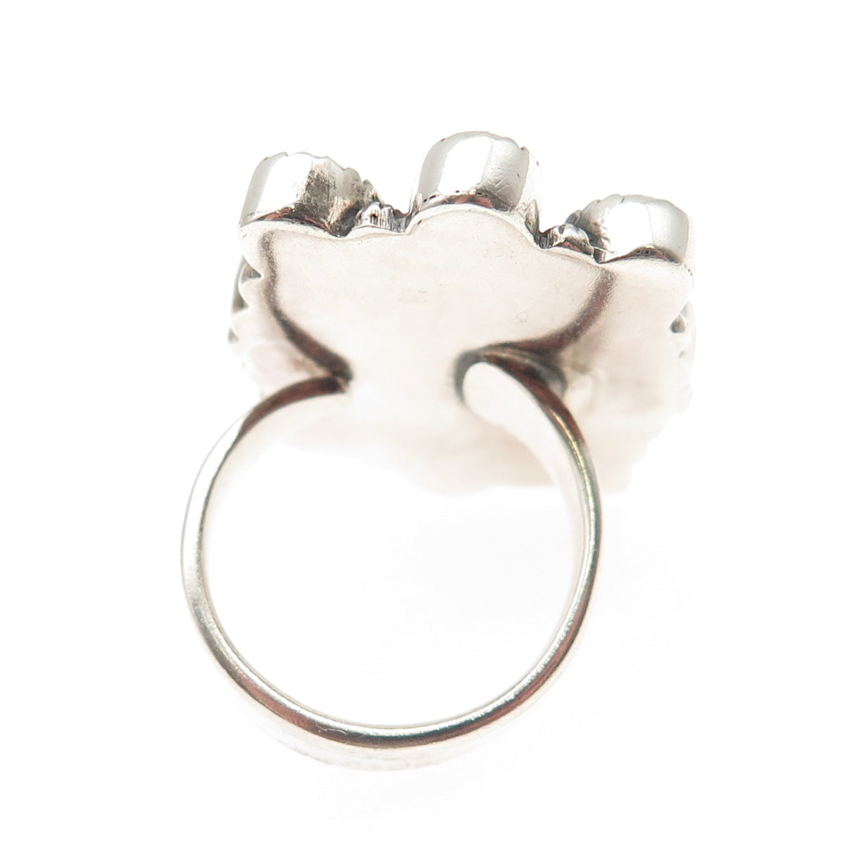 925 Sterling Silver Vintage Real Malachite & Pearl Statement Ring Size 9
