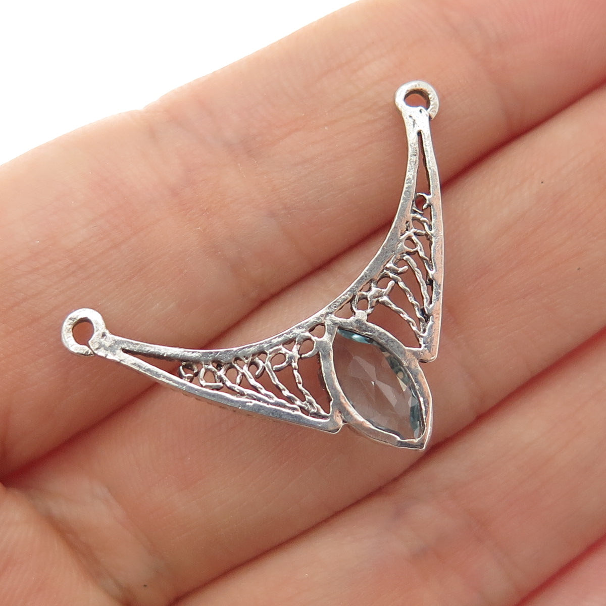 925 Sterling Silver Vintage Real Marquise-Cut Blue Topaz Centerpiece Pendant