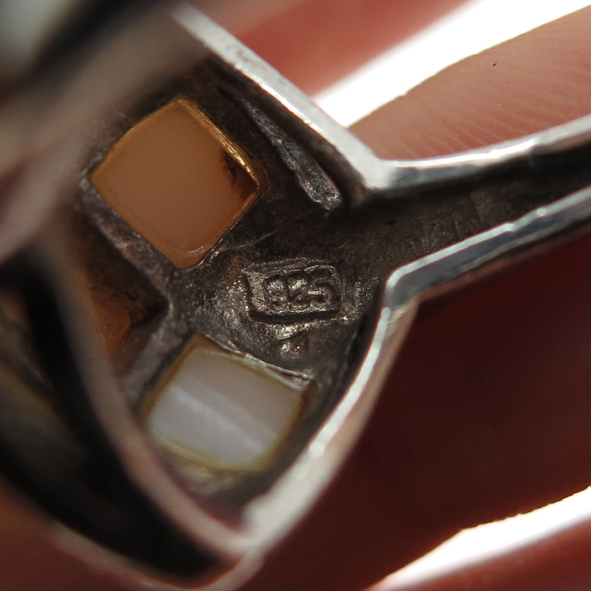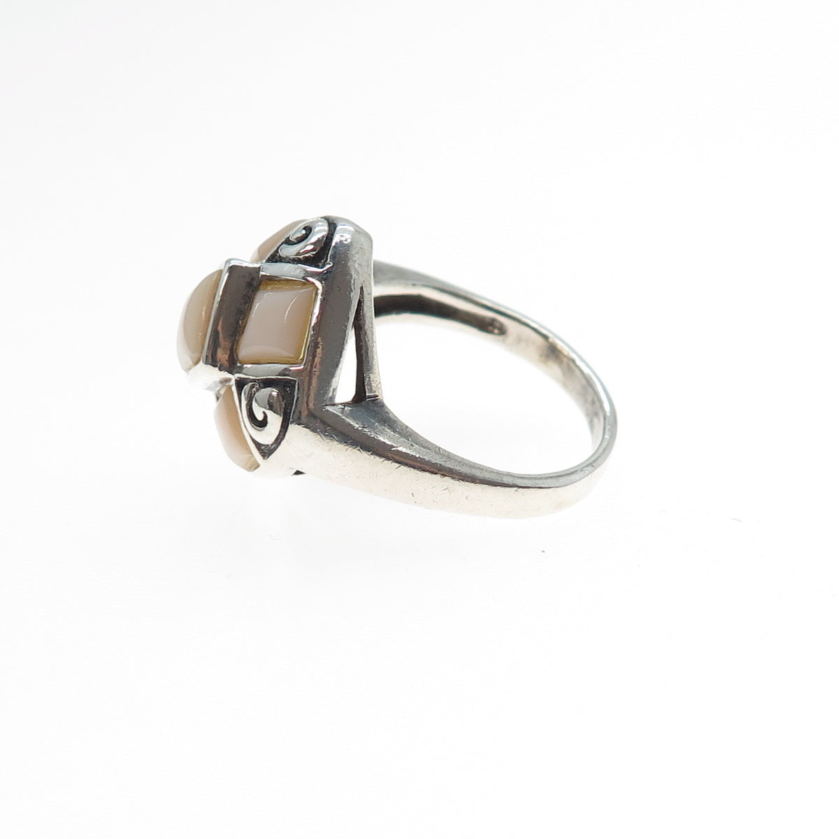 925 Sterling Silver Vintage Real MOP Modernist Spiral Ring Size 8.25