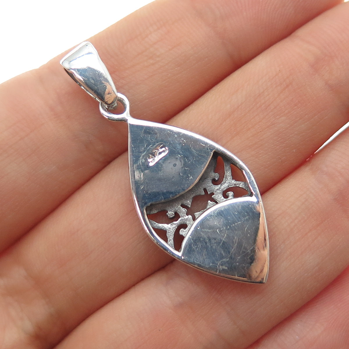 925 Sterling Silver Vintage Real MOP Ornate Charm Pendant