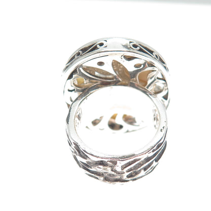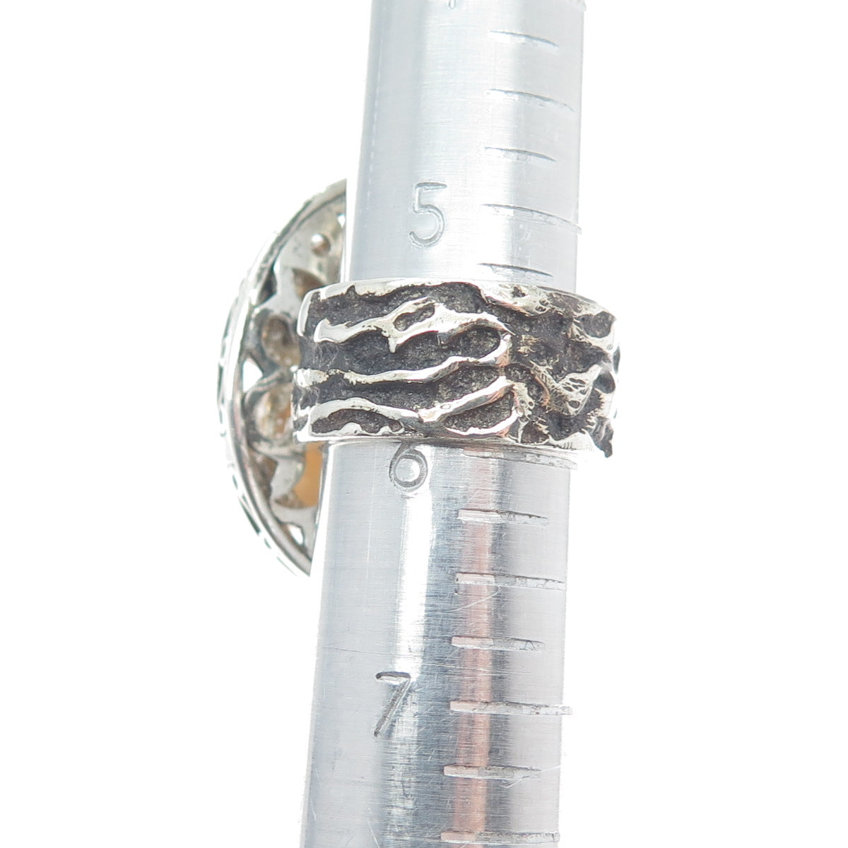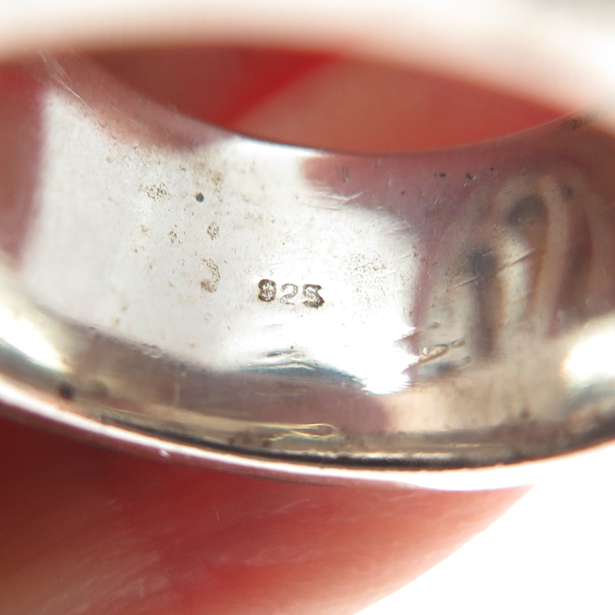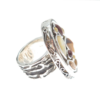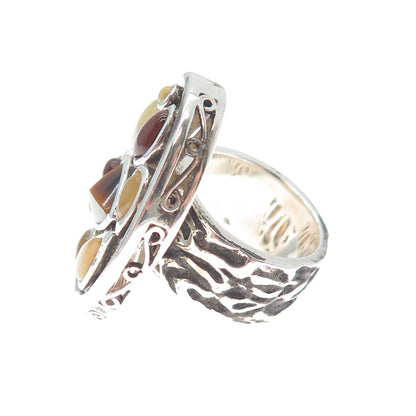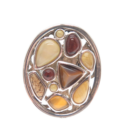 925 Sterling Silver Vintage Real MOP Tiger Eye Jade & Agate Oxidized Ring Size 6