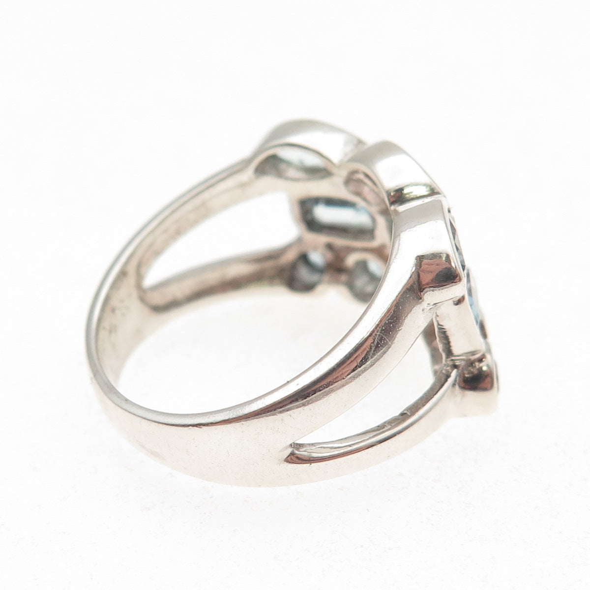 925 Sterling Silver Vintage Real Multi-Cut Blue Topaz Cluster Ring Size 8.25