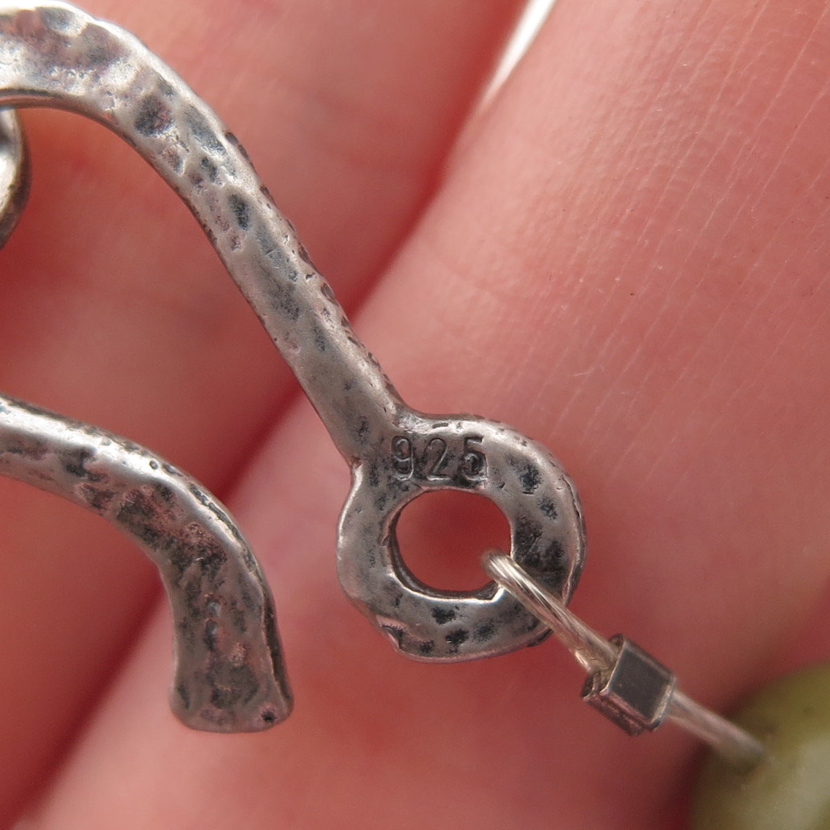 925 Sterling Silver Vintage Real Olive Green Jade Ball Beaded Necklace 16"