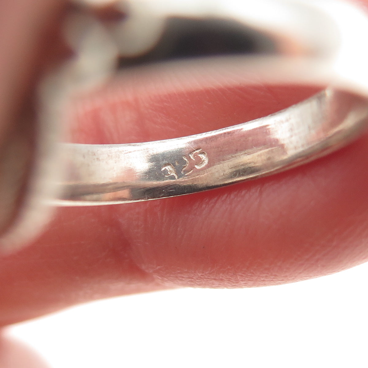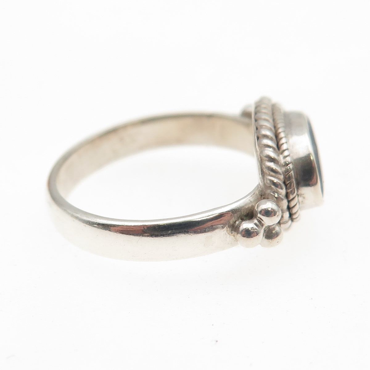 925 Sterling Silver Vintage Real Opal Modernist Beaded Ring Size 5.25