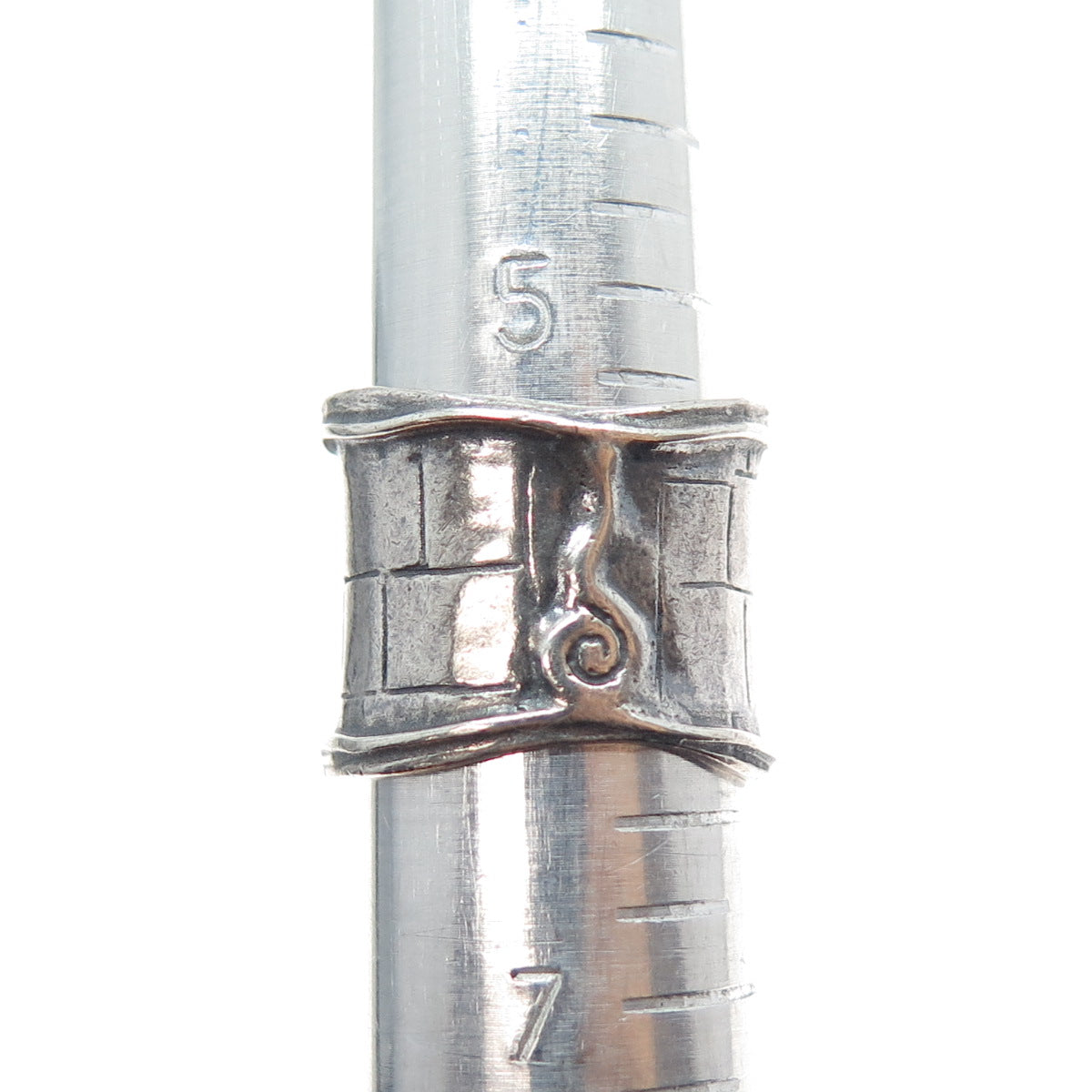 925 Sterling Silver Vintage Real Opal Modernist Oxidized Ring Size 6.25
