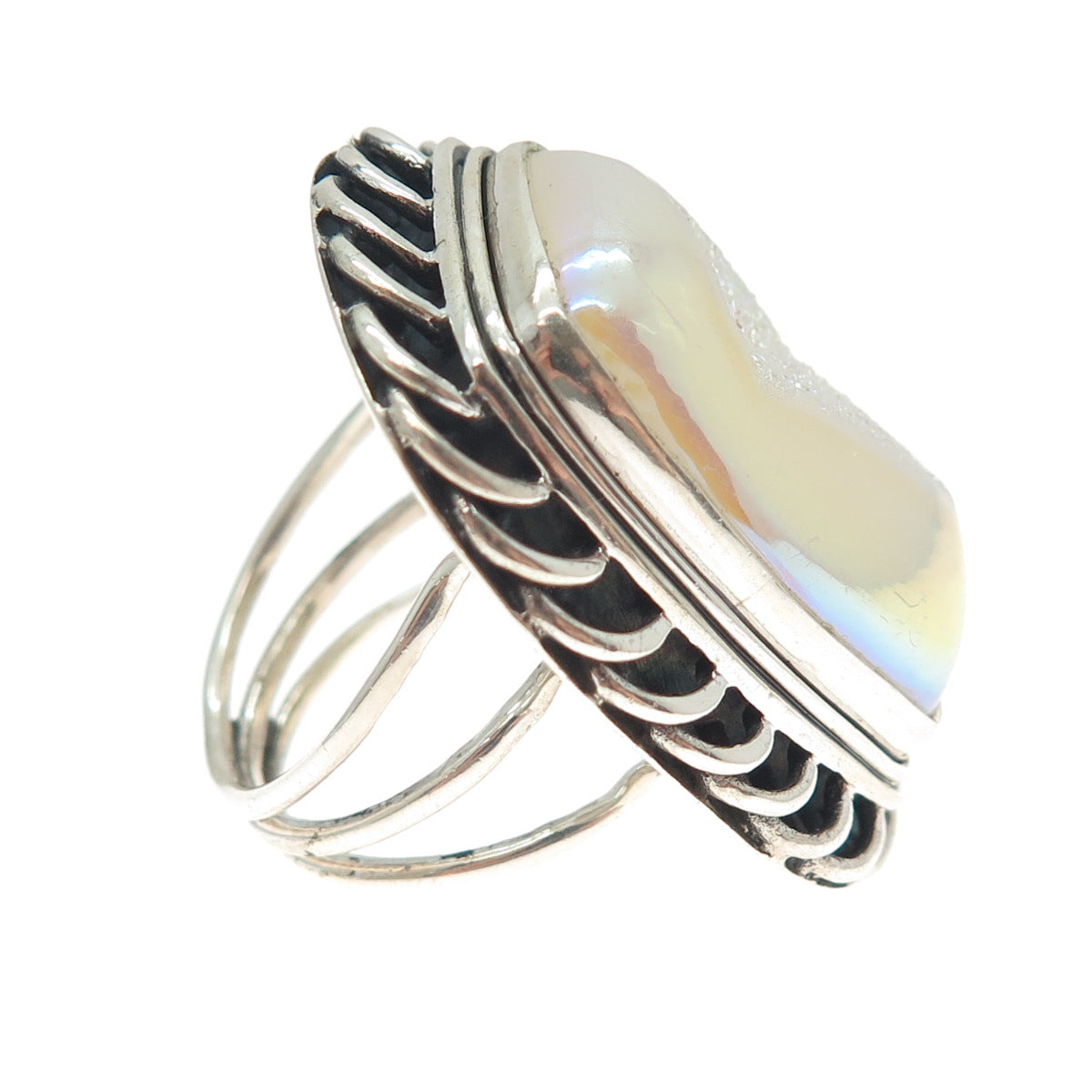 925 Sterling Silver Vintage Real Opalescent Druzy Modernist Ring Size 6.25