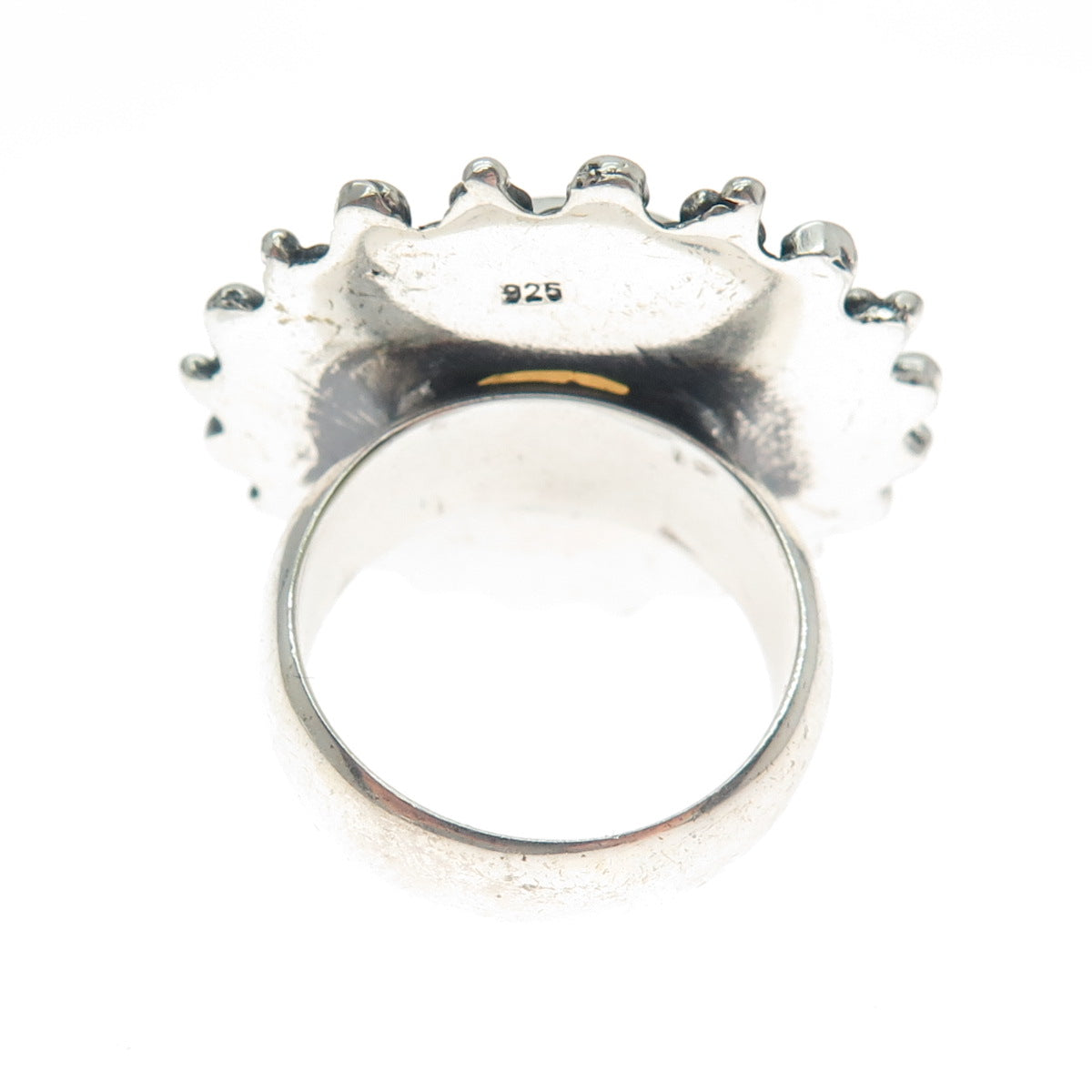925 Sterling Silver Vintage Real Opalite Roped Beaded Sun Oxidized Ring Size 8.5