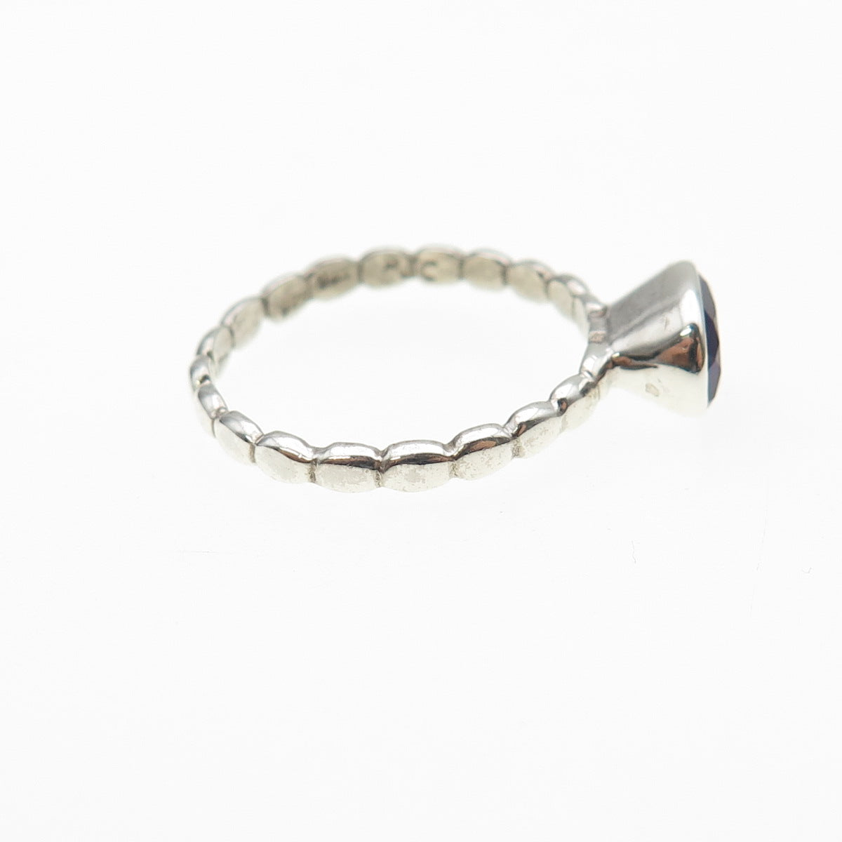 925 Sterling Silver Vintage Real Oval-Cut Amethyst Bubble Ring Size 7