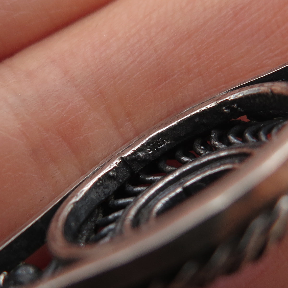 925 Sterling Silver Vintage Real Oval-Cut Amethyst Oxidized Pin Brooch