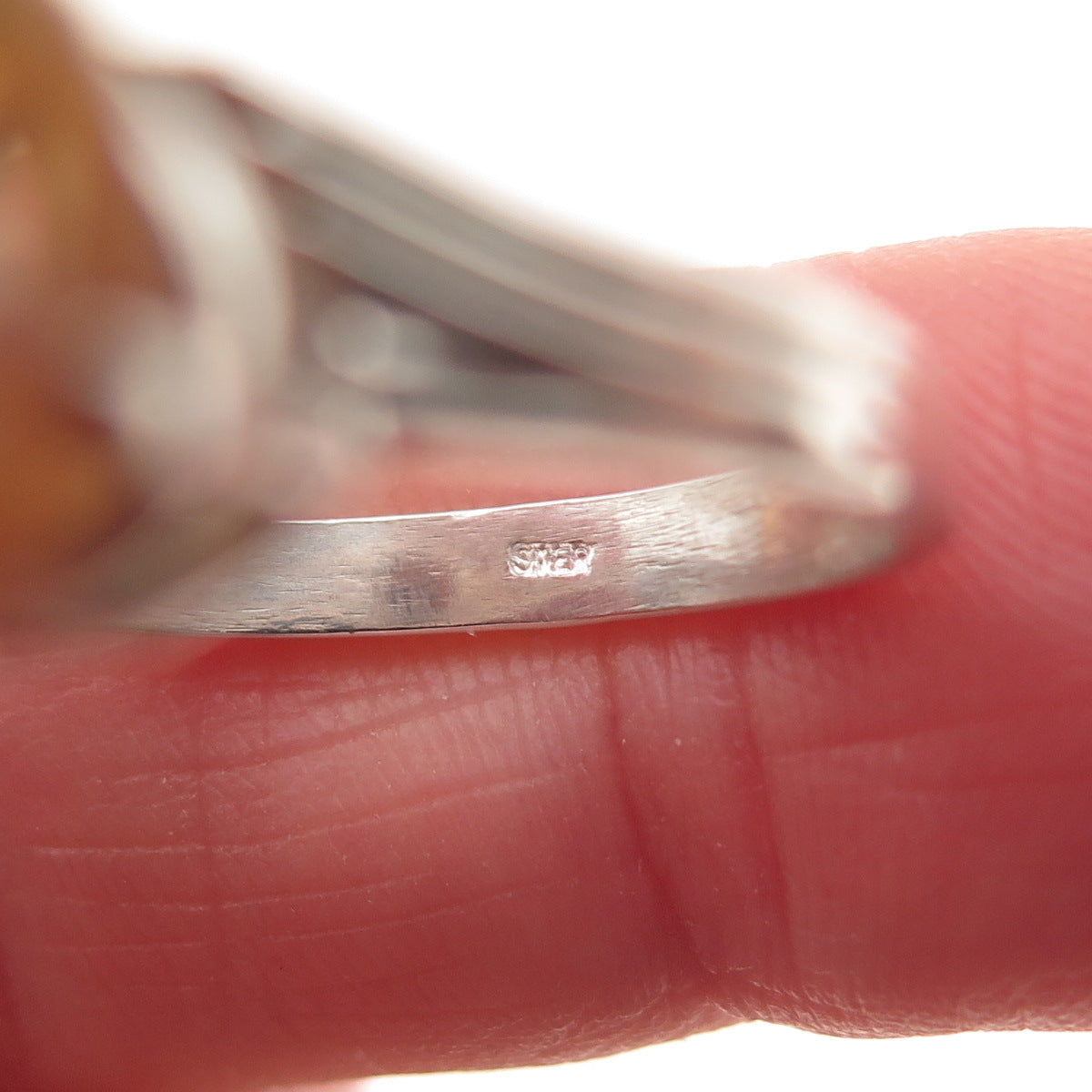 925 Sterling Silver Vintage Real Oval-Cut Citrine Bypass Ring Size 8.75