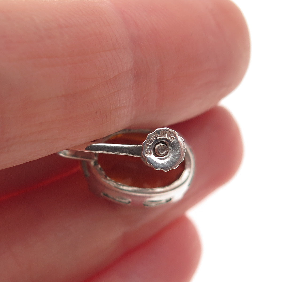 925 Sterling Silver Vintage Real Oval-Cut Citrine Screw Back Earrings