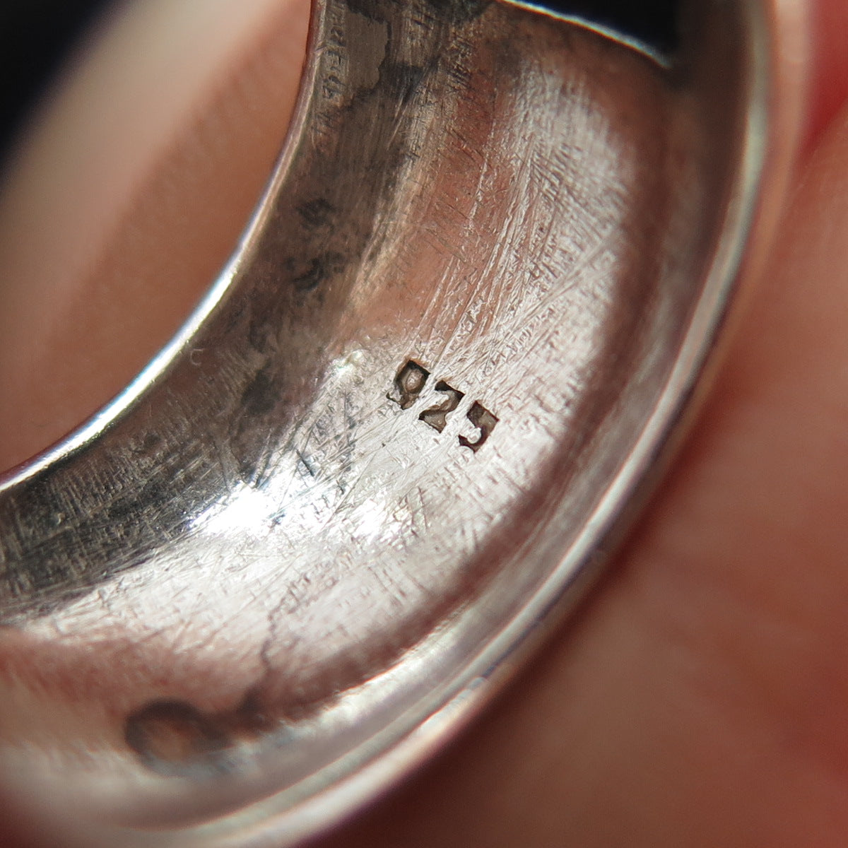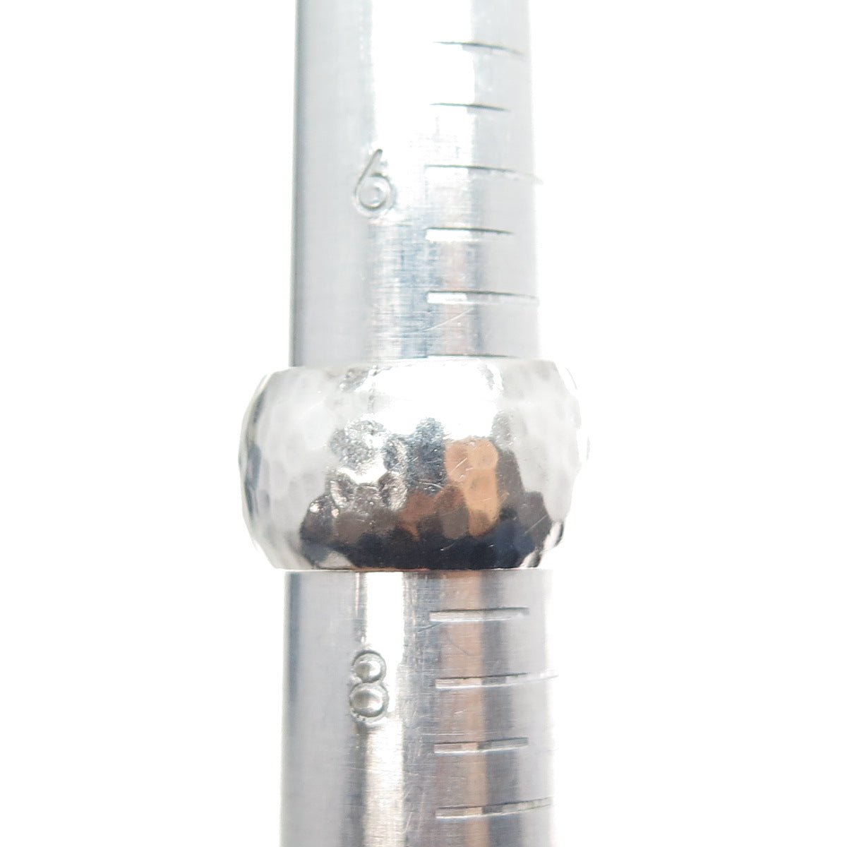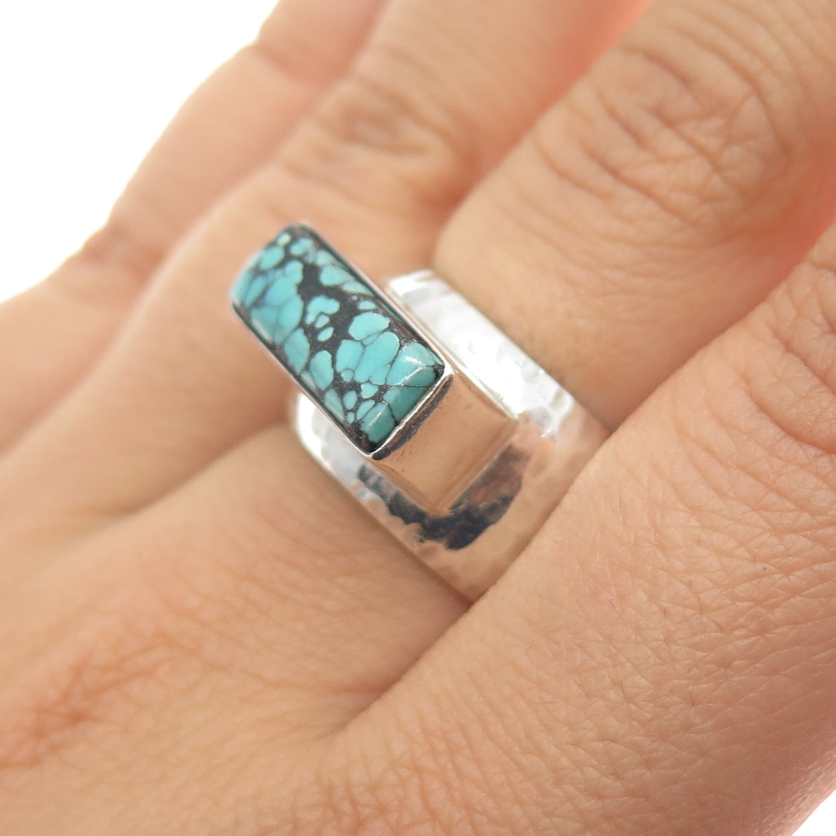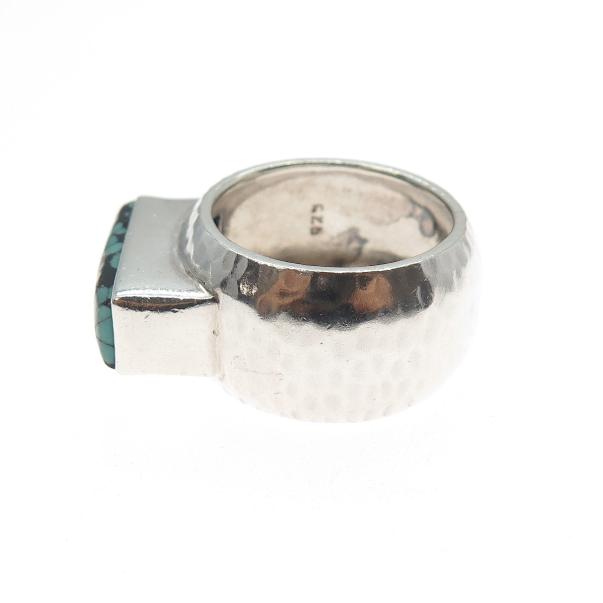 925 Sterling Silver Vintage Real Peacock Turquoise Hammered Finish Ring Size 7.5