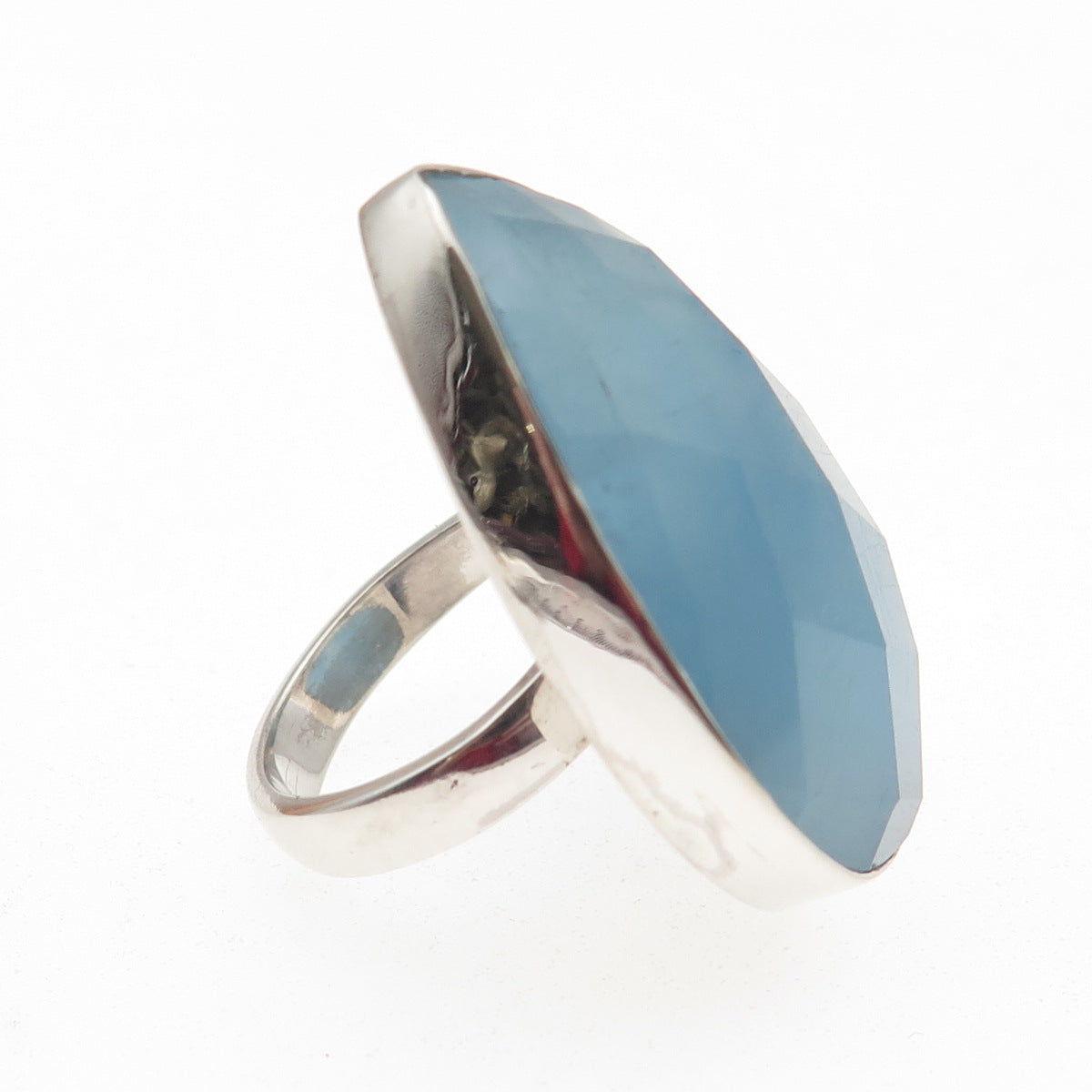 925 Sterling Silver Vintage Real Pear-Cut Aquamarine Statement Ring Size 8.75