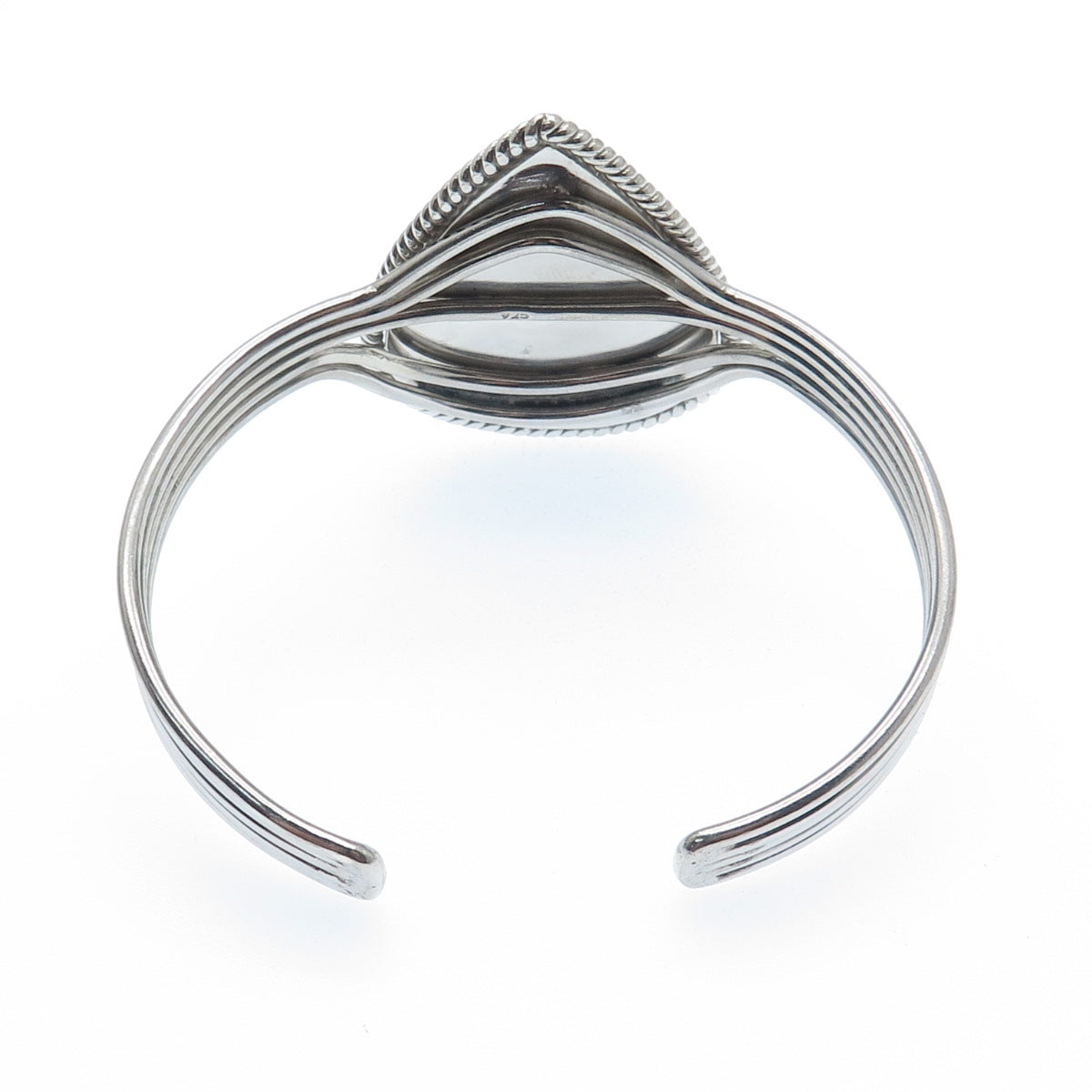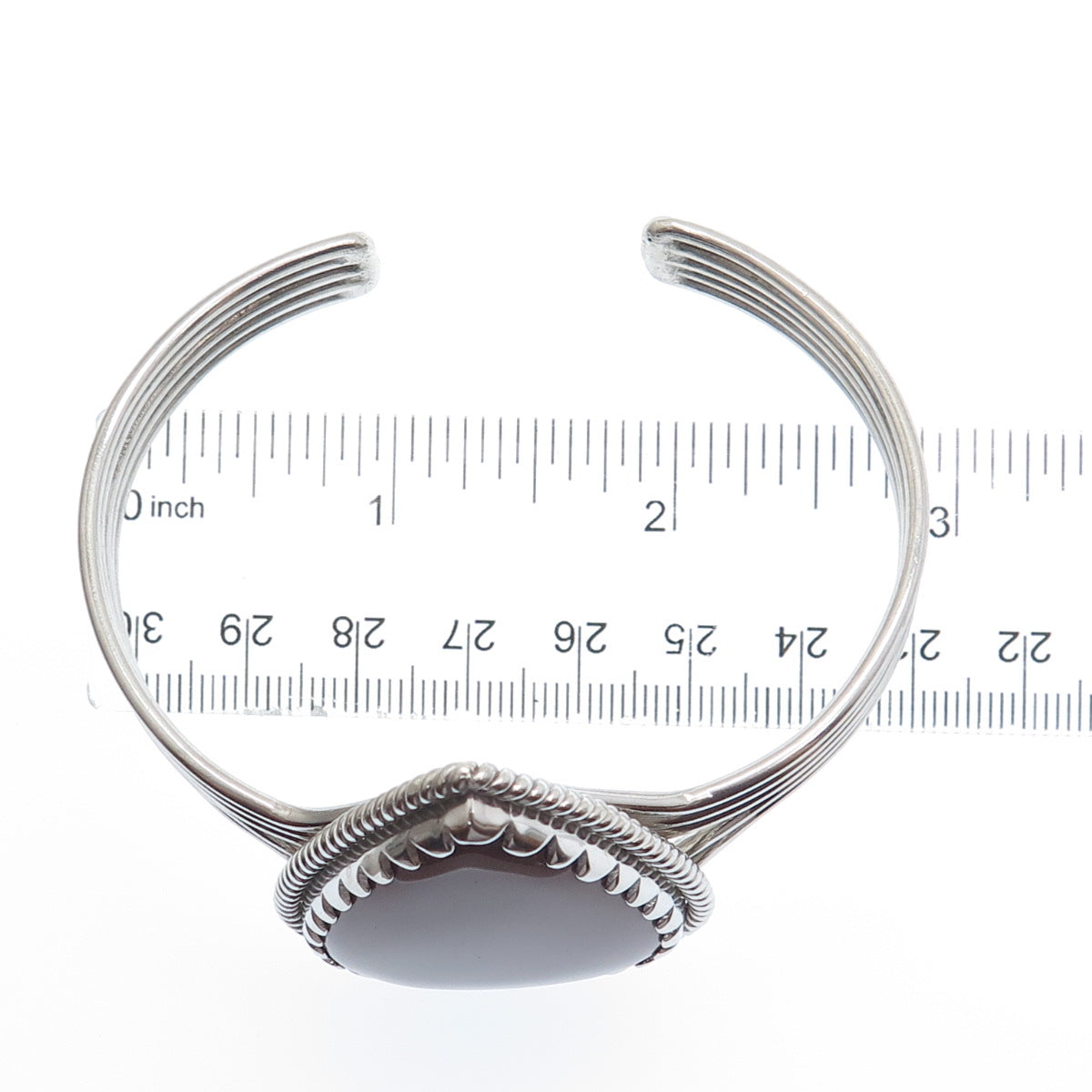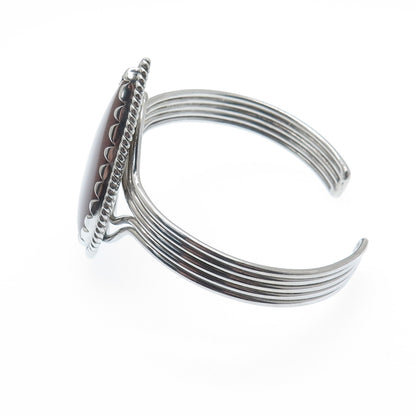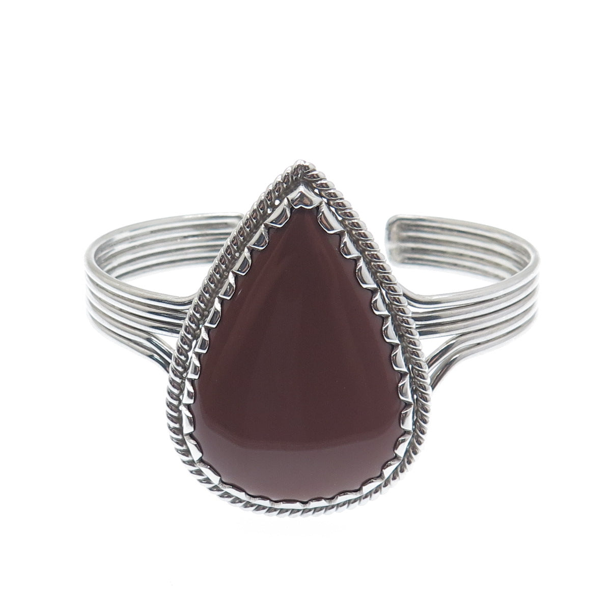 925 Sterling Silver Vintage Real Pear-Cut Jasper Adjustable Cuff Bracelet 7.75"