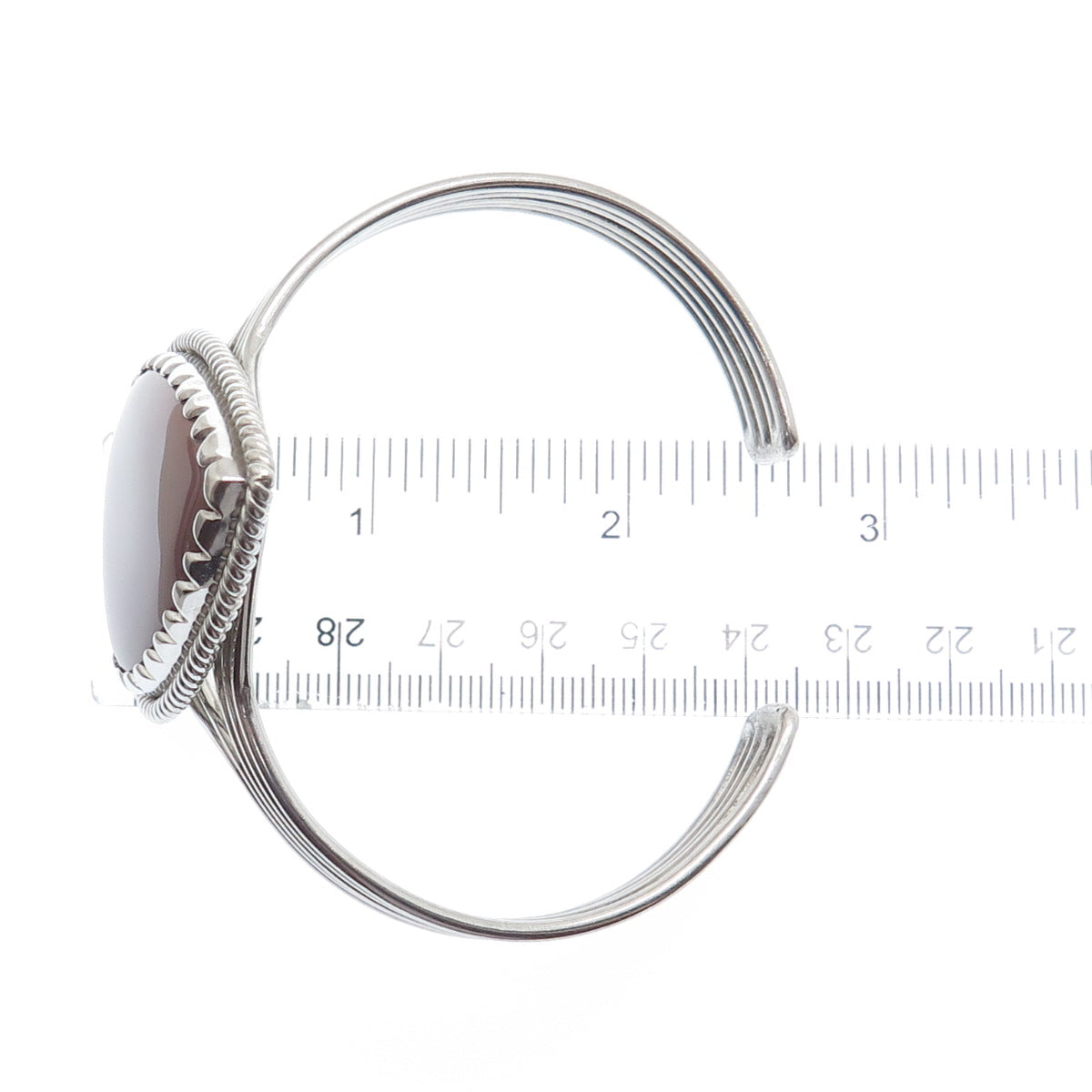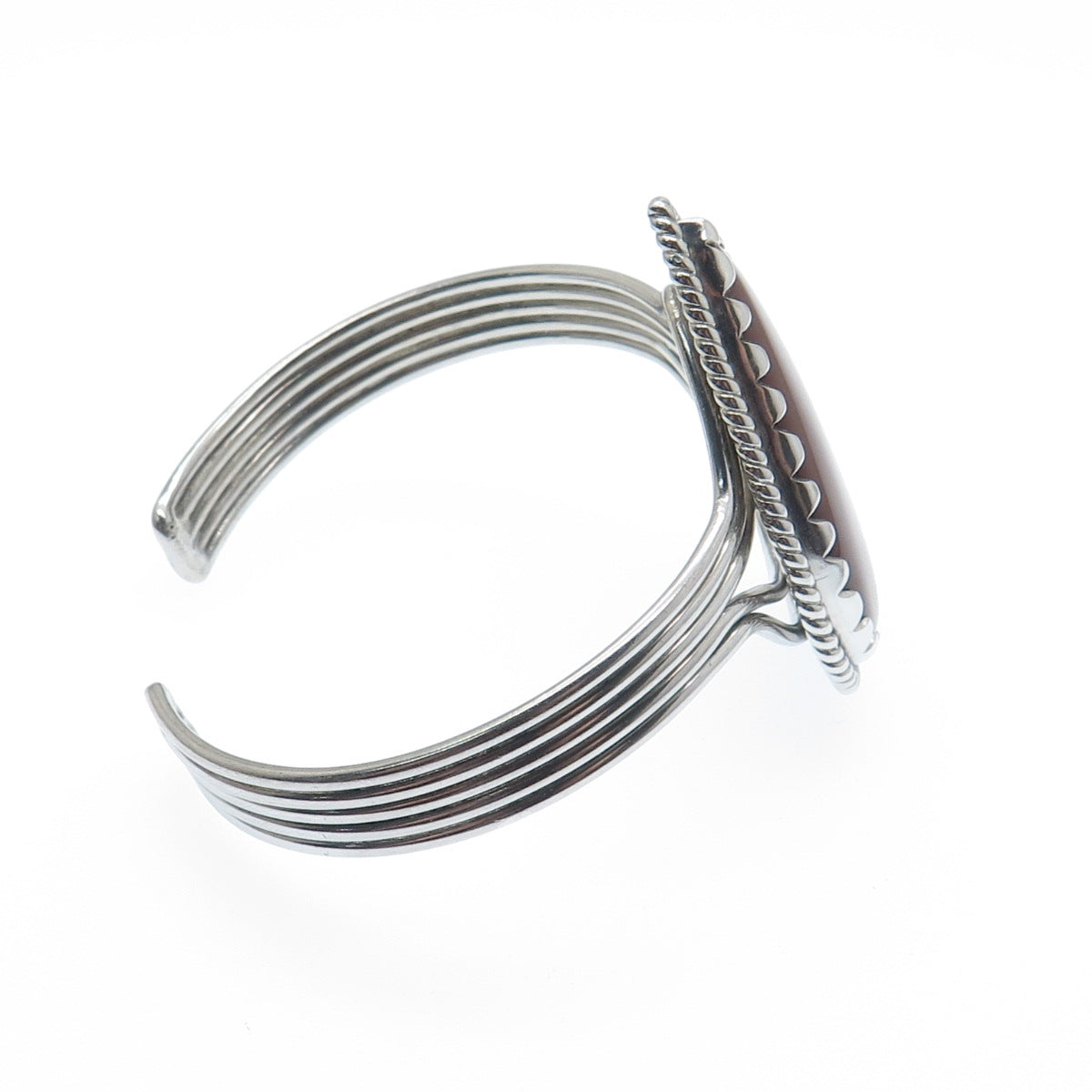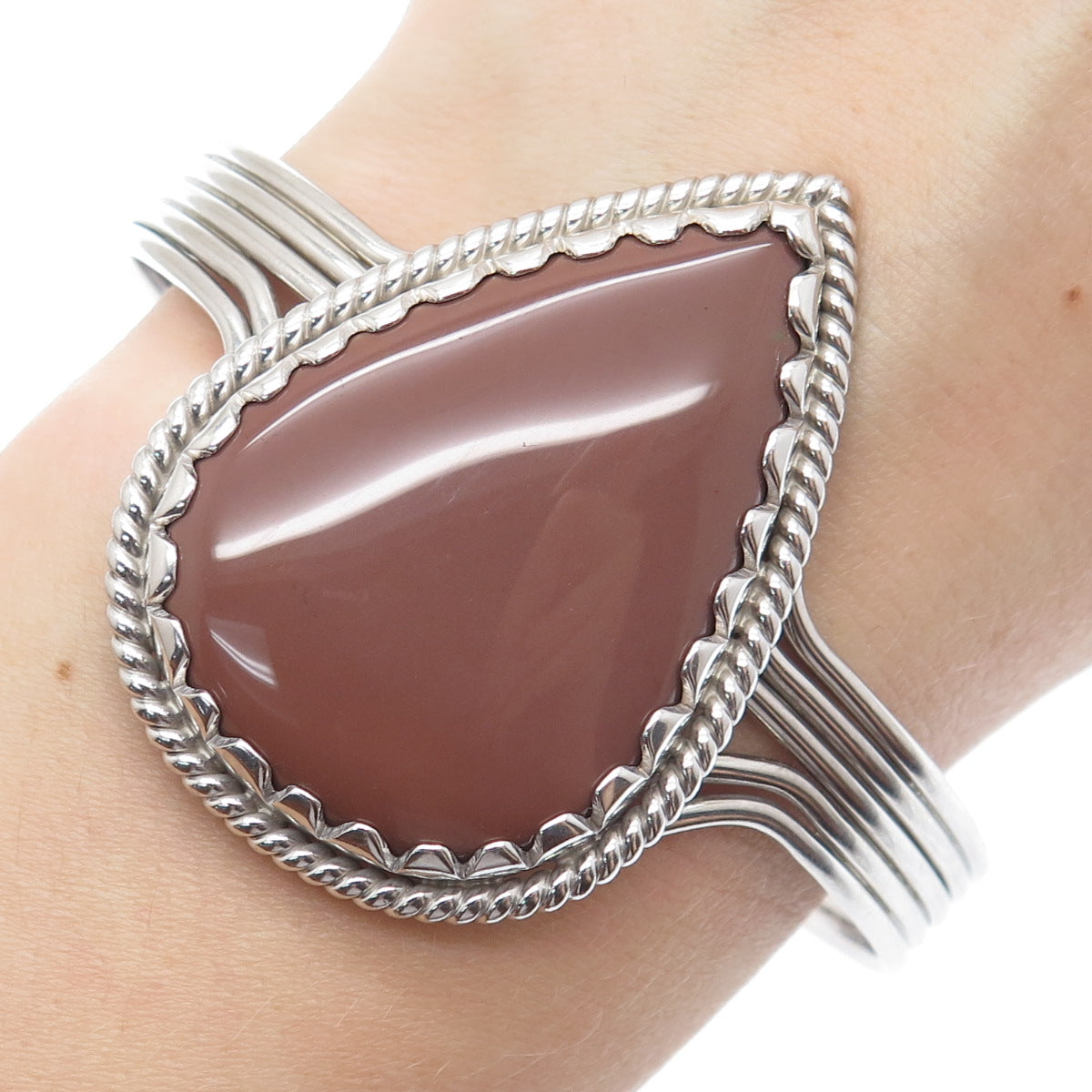 925 Sterling Silver Vintage Real Pear-Cut Jasper Adjustable Cuff Bracelet 7.75"