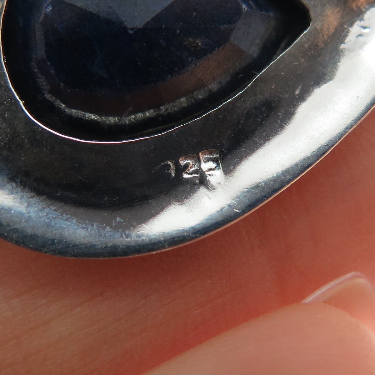 925 Sterling Silver Vintage Real Pear-Cut Sapphire Teardrop Charm Pendant