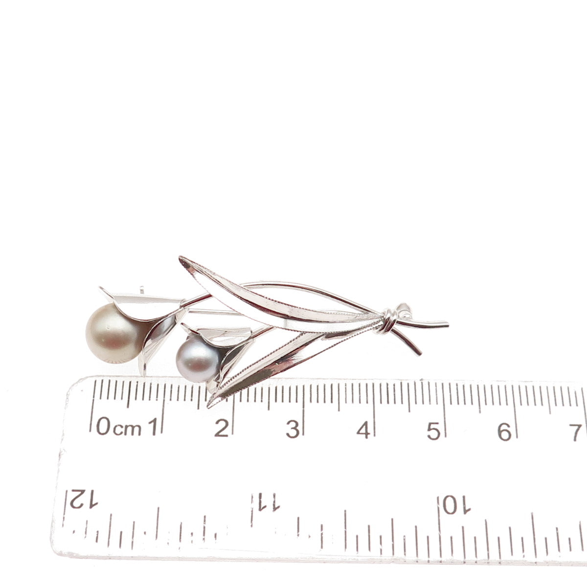 925 Sterling Silver Vintage Real Pearl Calla Lily Flower Pin Brooch