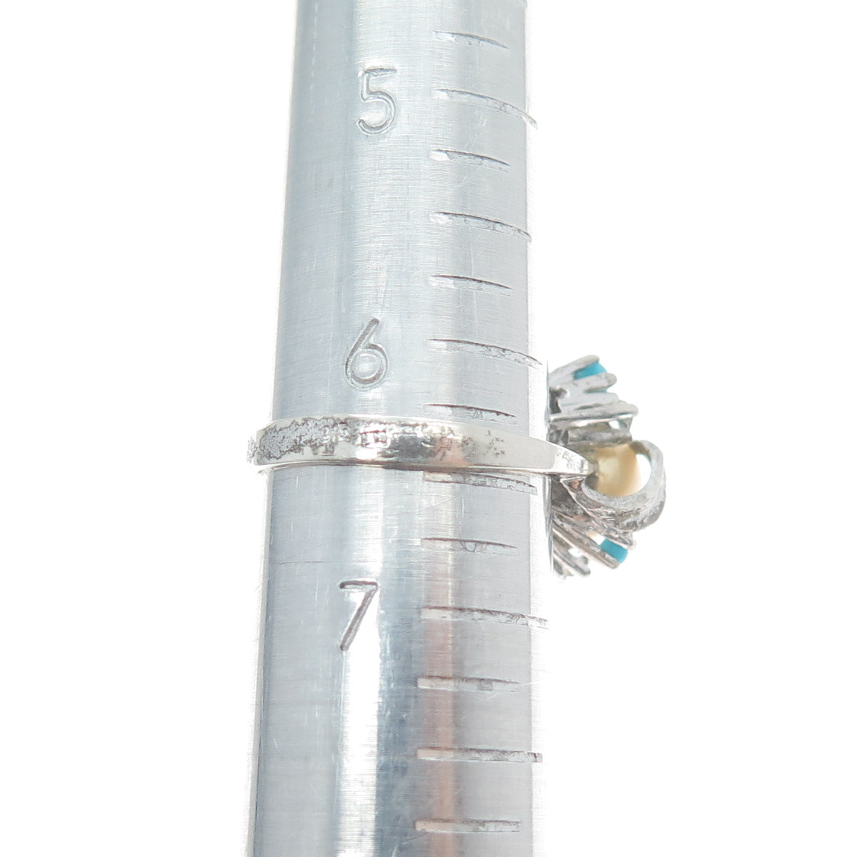 925 Sterling Silver Vintage Real Pearl Faux Turquoise & C Z Ring Size 6.5