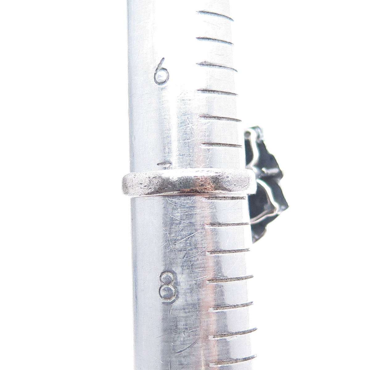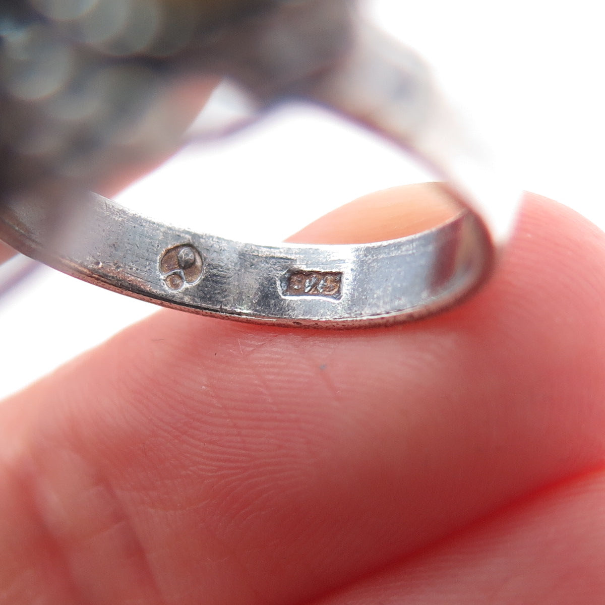 925 Sterling Silver Vintage Real Pearl & Opal Flower Oxidized Ring Size 7.25