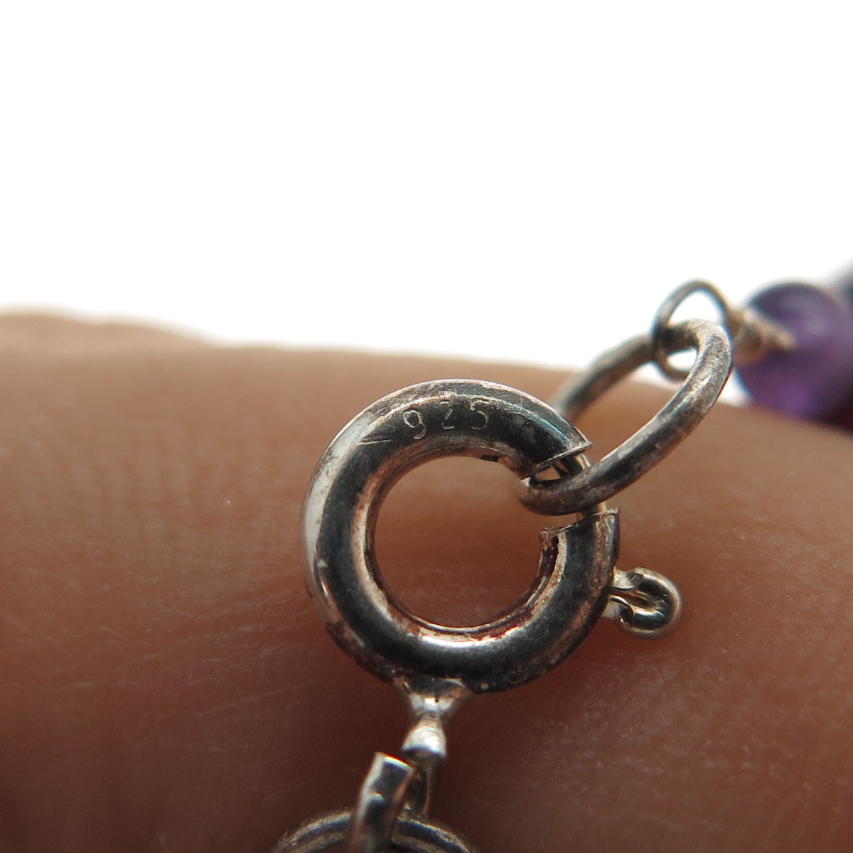 925 Sterling Silver Vintage Real Red Garnet & Amethyst Beaded Chain Necklace 16"