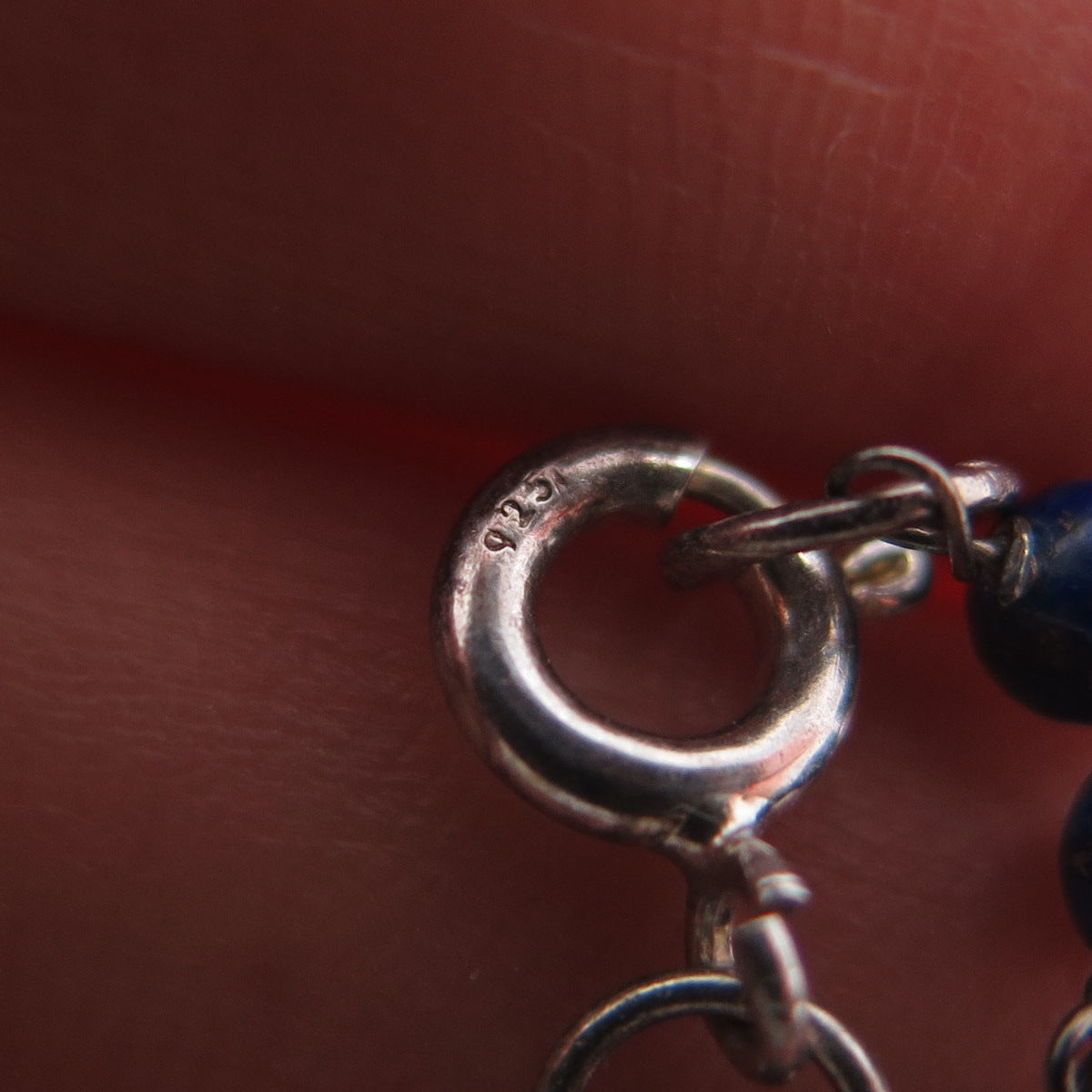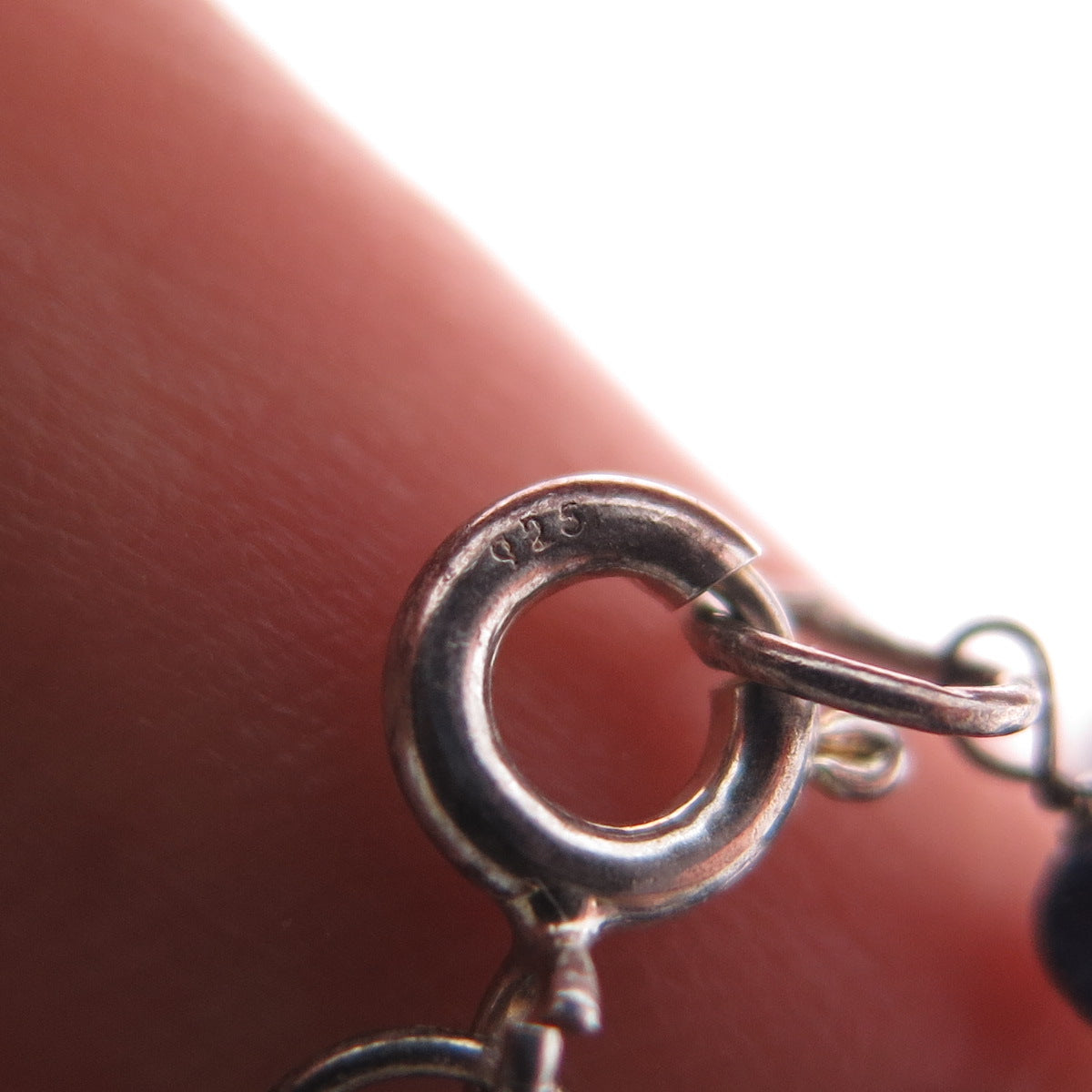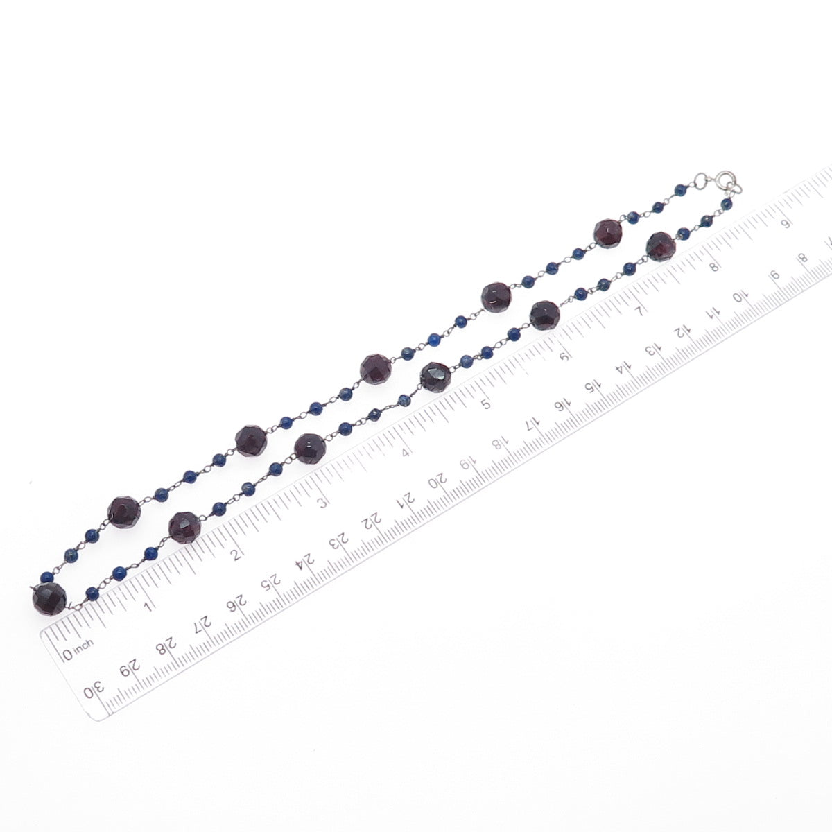 925 Sterling Silver Vintage Real Red Garnet & Lapis Beaded Chain Necklace 18"
