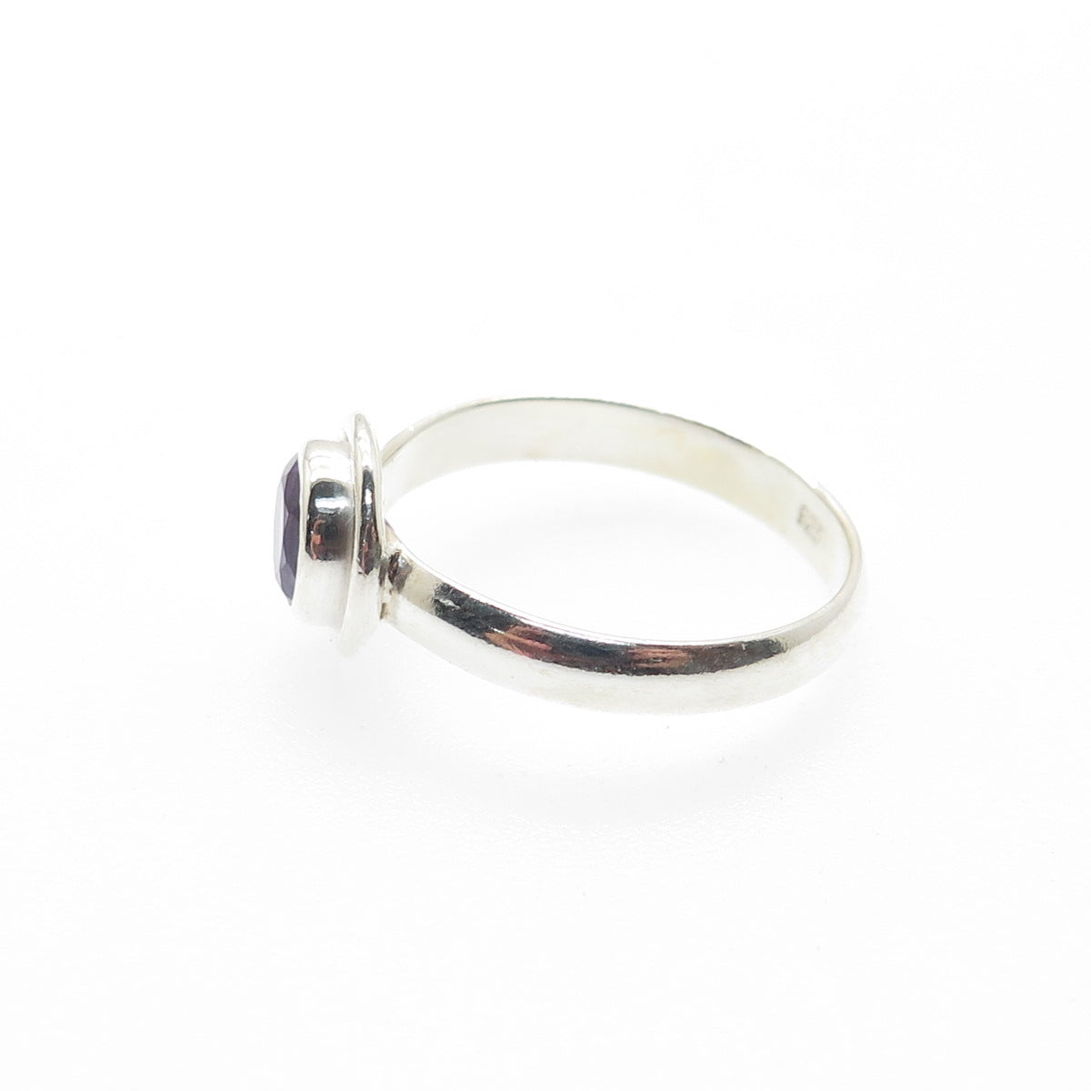 925 Sterling Silver Vintage Real Round-Cut Amethyst Ring Size 7.75