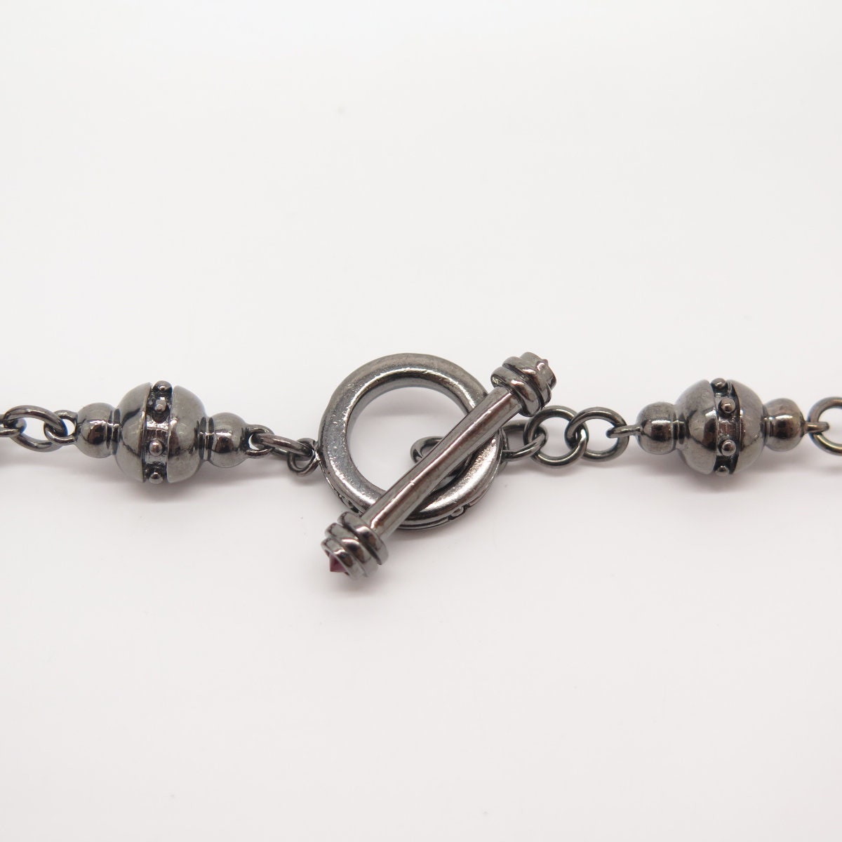 925 Sterling Silver Vintage Real Ruby Gem Station Bead Chain Necklace 28.5"