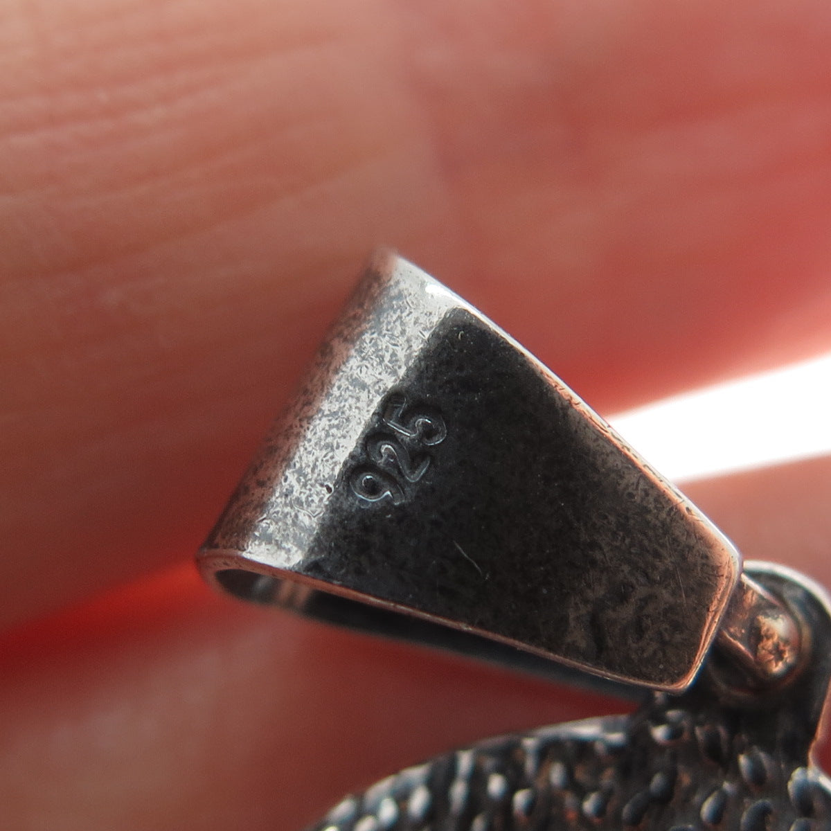 925 Sterling Silver Vintage Real Ruby St. Barbara Diamond-Cut Oxidized Pendant