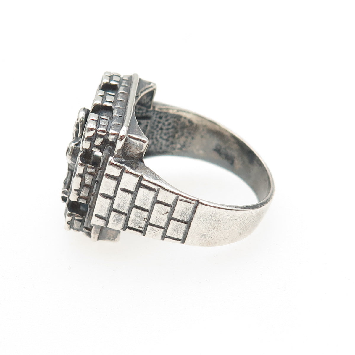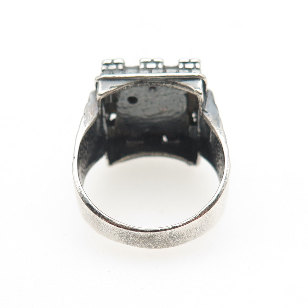 925 Sterling Silver Vintage Real Ruby St. Barbara Religious Oxidized Ring Size 9