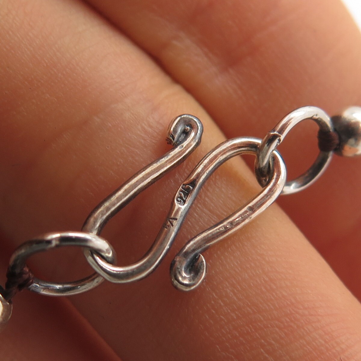 925 Sterling Silver Vintage Real Smoky Quartz Cross Bead Chain Necklace 18"