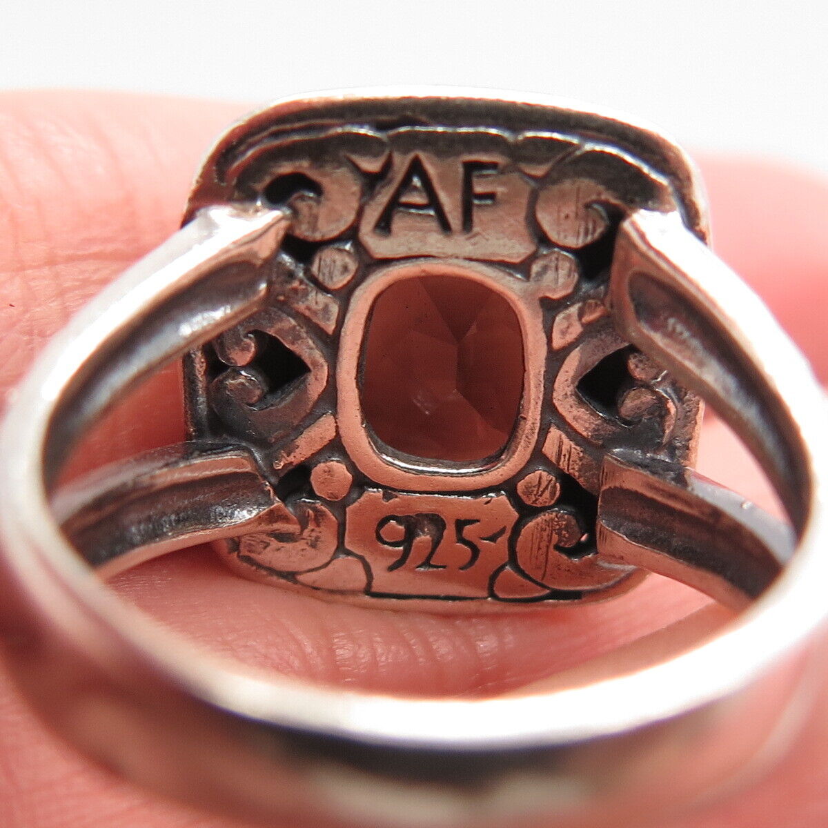 925 Sterling Silver Vintage Real Smoky Quartz Dots Ring Size 7.25