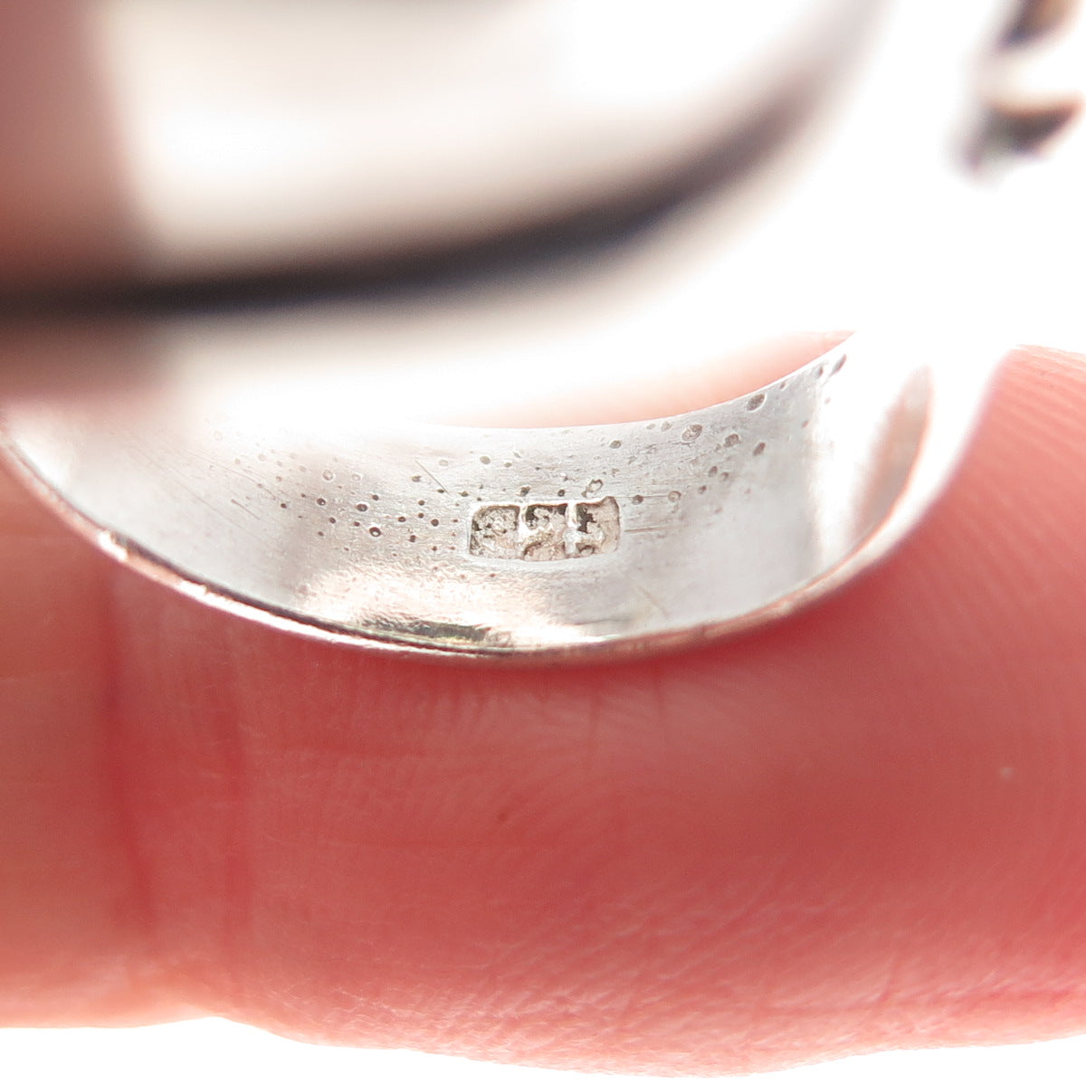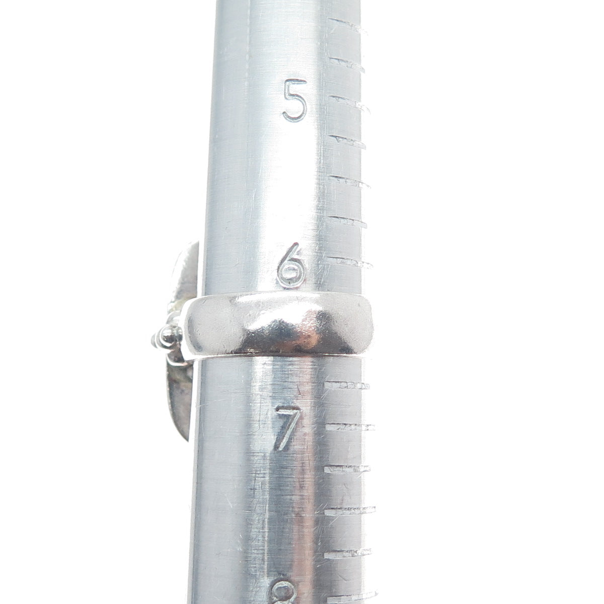 925 Sterling Silver Vintage Real Smoky Quartz Modernist Beaded Ring Size 6.5