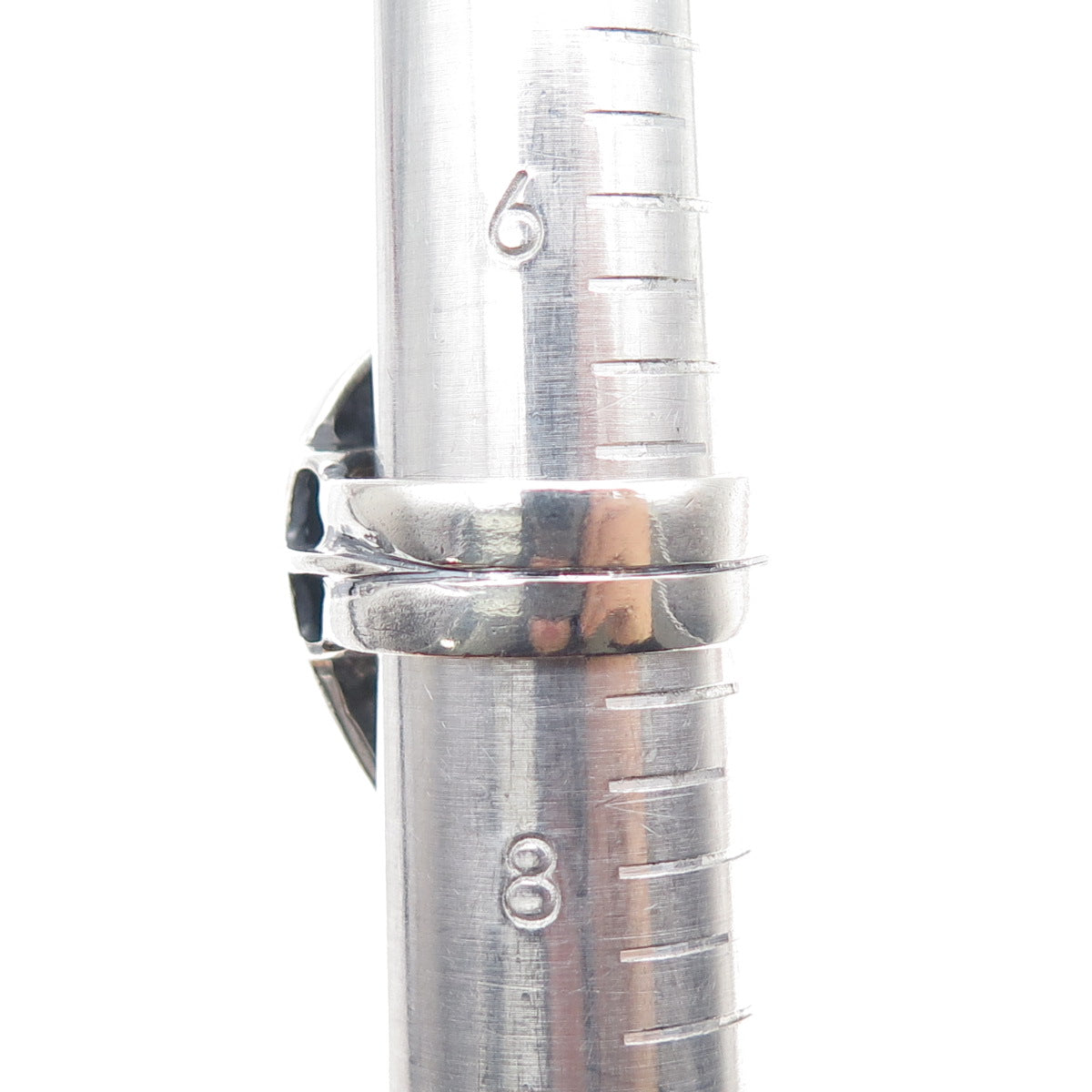 925 Sterling Silver Vintage Real Smoky Quartz Modernist Oxidized Ring Size 7.25