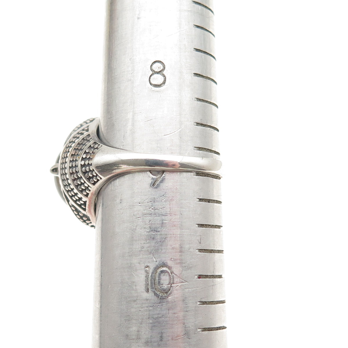 925 Sterling Silver Vintage Real Smoky Quartz Oxidized Dotted Ring Size 9