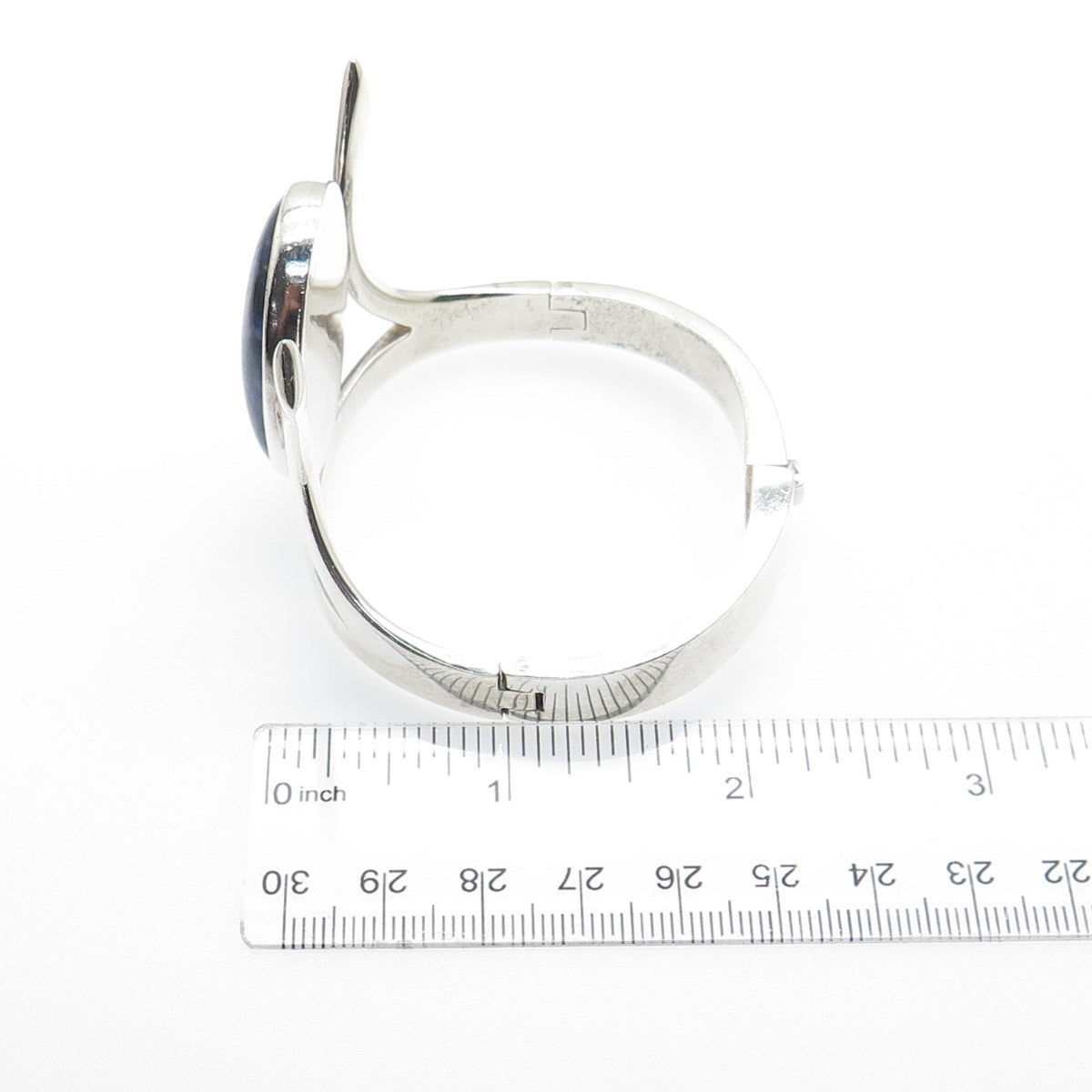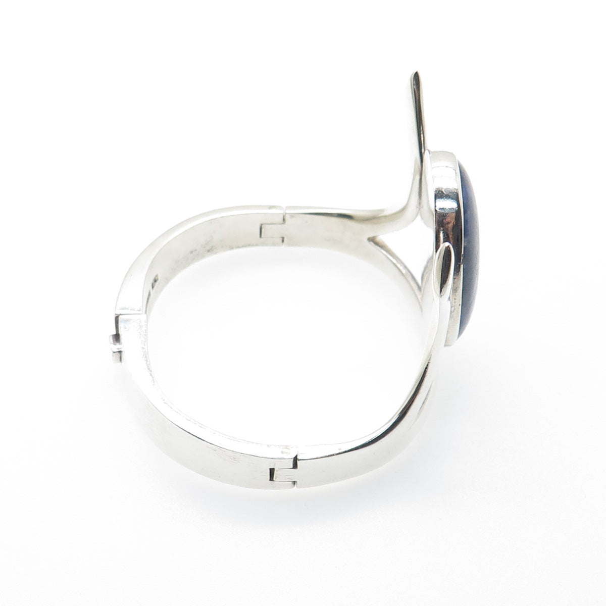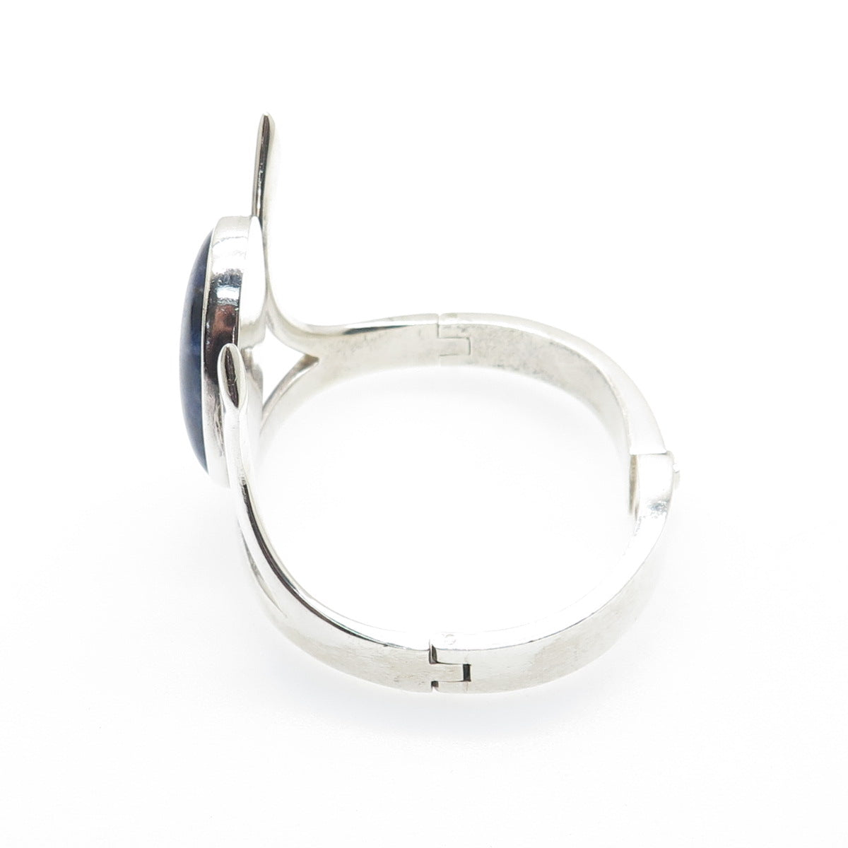 925 Sterling Silver Vintage Real Sodalite Modernist Heavy 77.9g Bracelet 6.75"