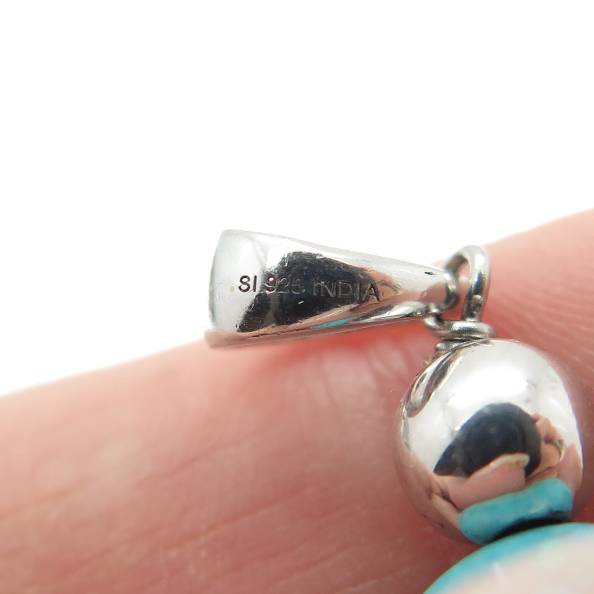 925 Sterling Silver Vintage Real Turquoise Gemstone Beaded Tassel Pendant