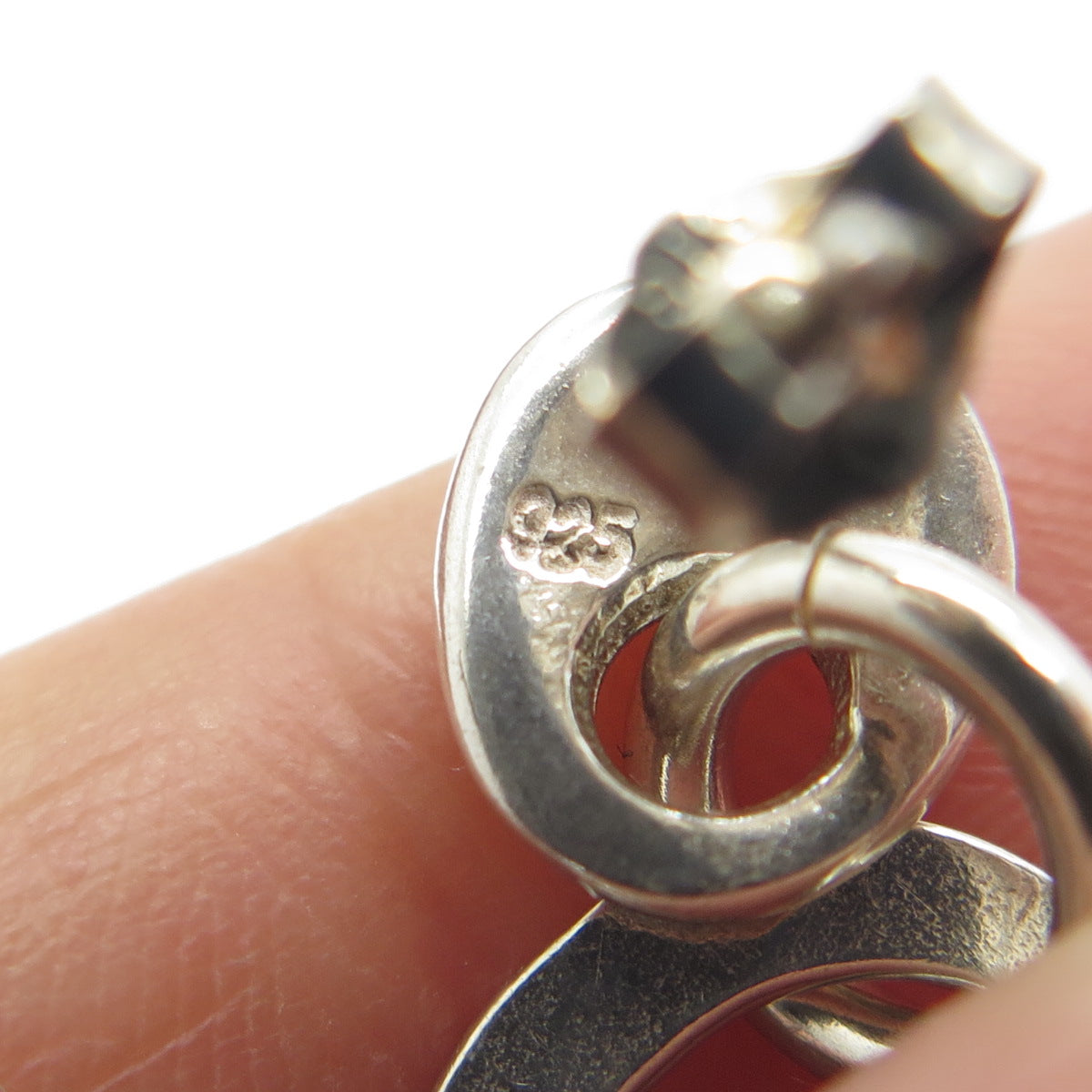 925 Sterling Silver Vintage Real Turquoise Modernist Drop Circle Dangle Earrings
