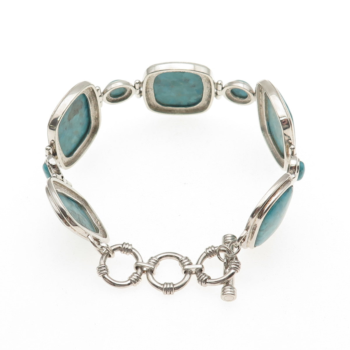 925 Sterling Silver Vintage Real Turquoise Panel Link Bracelet 6.5-7.75"