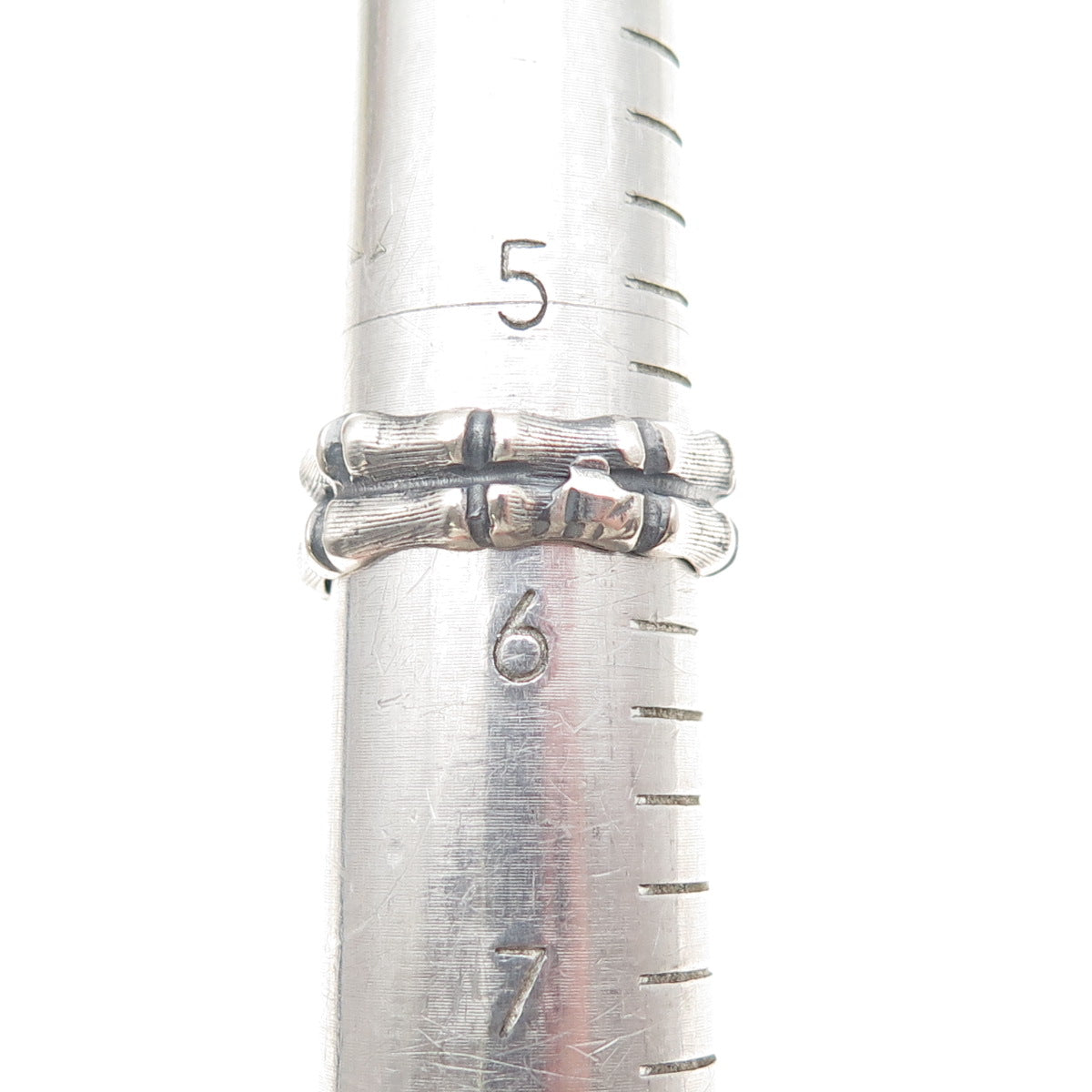 925 Sterling Silver Vintage Rhinestone Modernist Bamboo Oxidized Ring Size 5.75