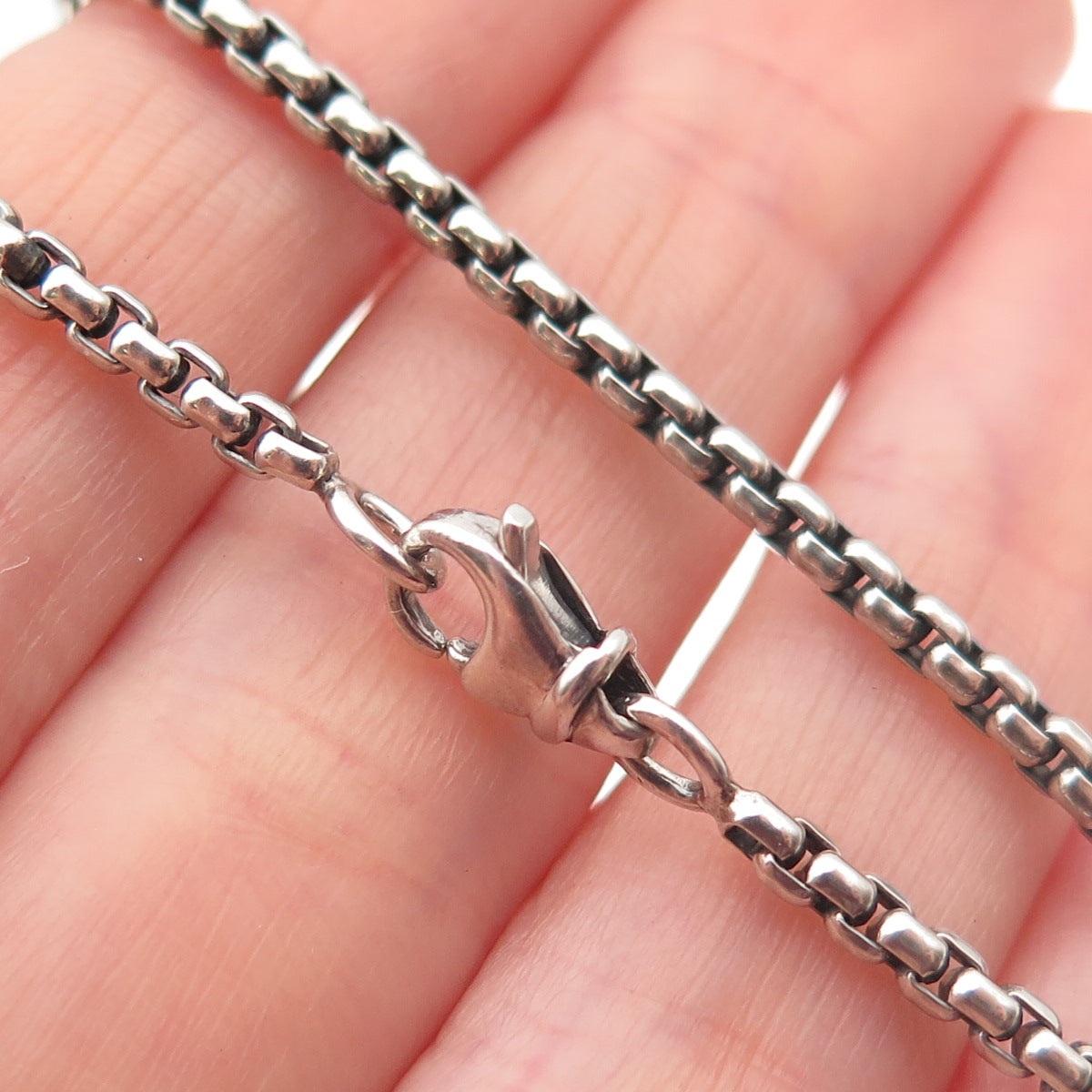 925 Sterling Silver Vintage Round Box Oxidized Chain Necklace 16"