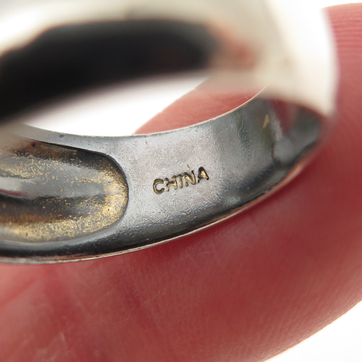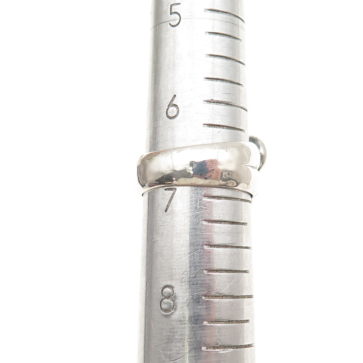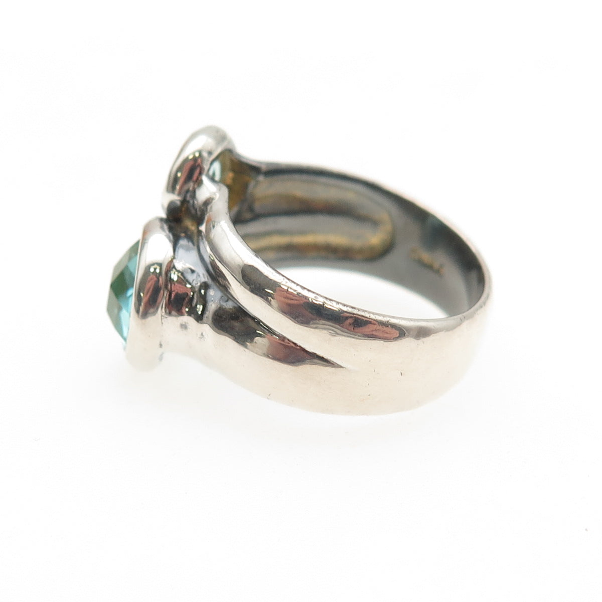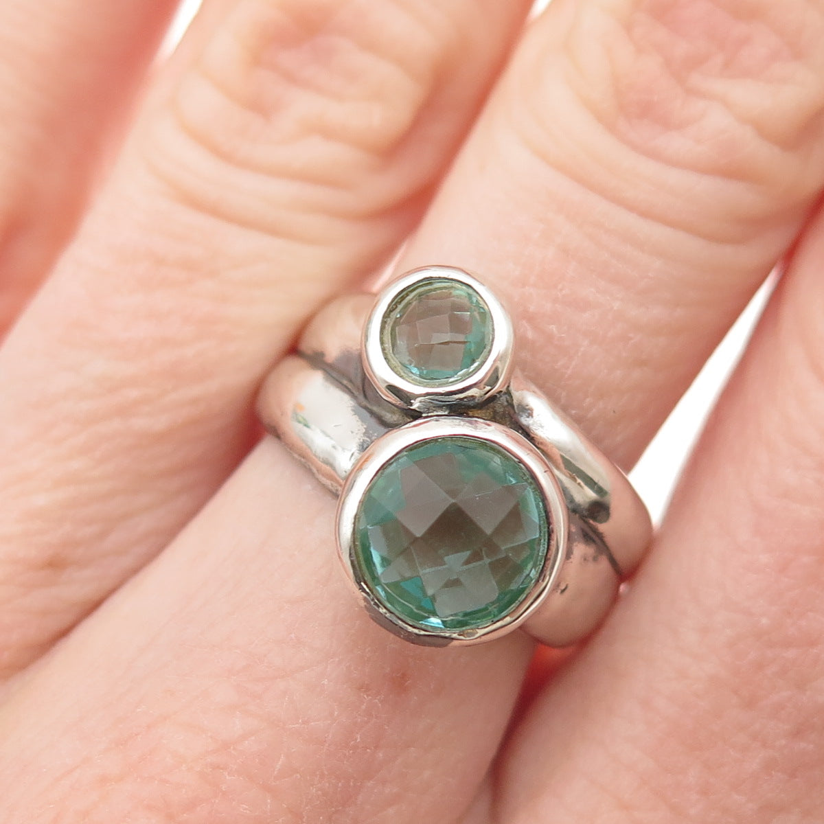 925 Sterling Silver Vintage Round-Cut Blue C Z Modernist 2-Row Ring Size 7