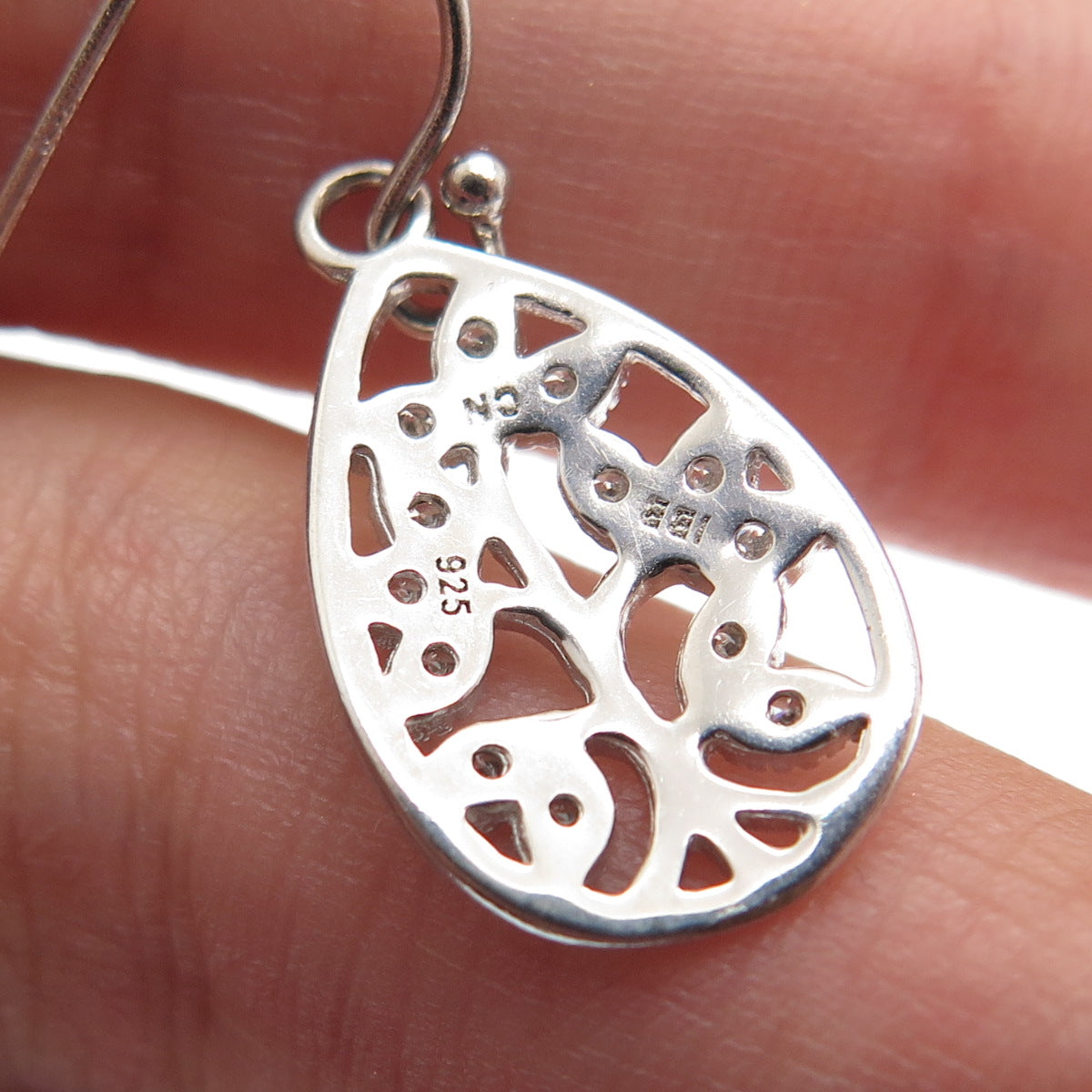 925 Sterling Silver Vintage Round-Cut C Z Floral Teardrop Dangle Earrings