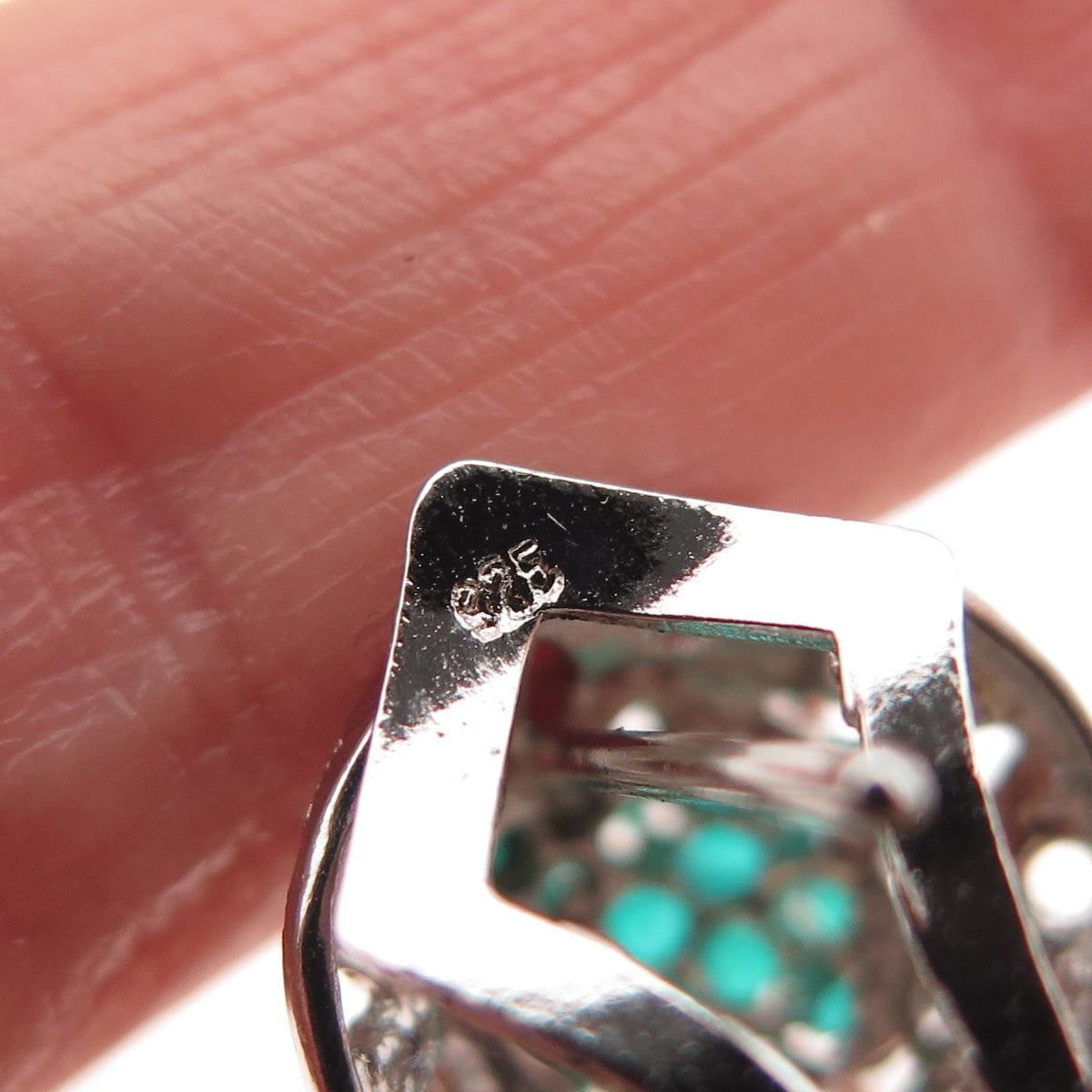 925 Sterling Silver Vintage Round-Cut Green Rhinestone Omega Back Earrings
