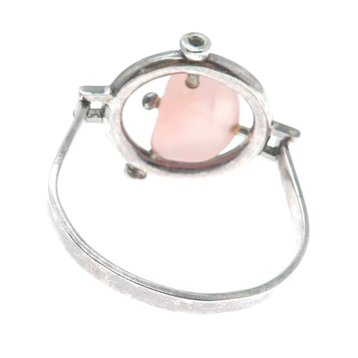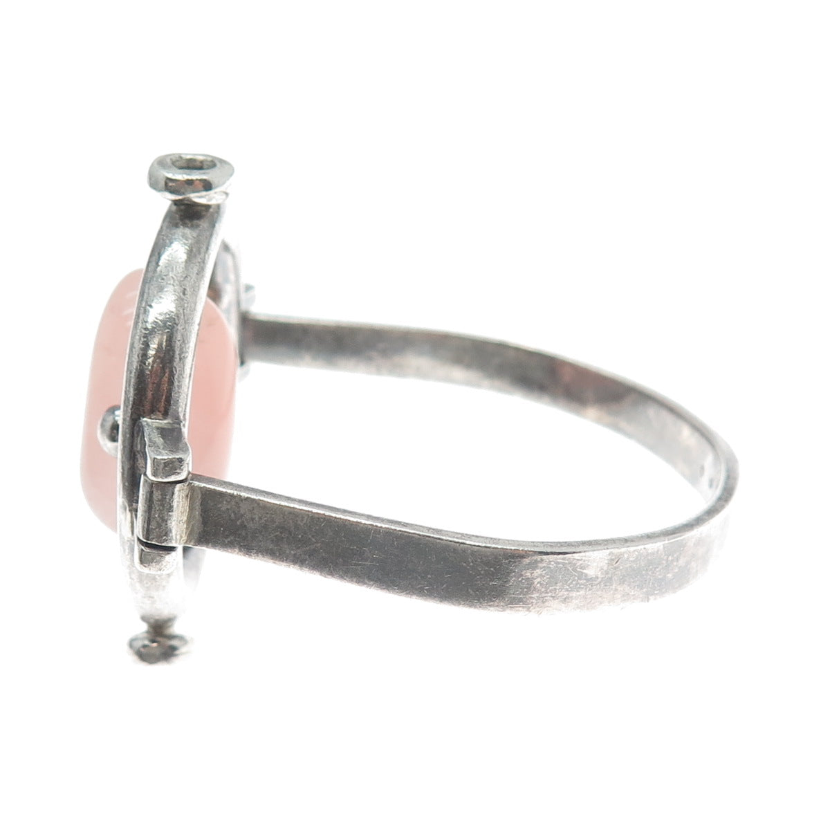 925 Sterling Silver Vintage RP Poland Real Rose Quartz Modernist Bracelet 6.25"