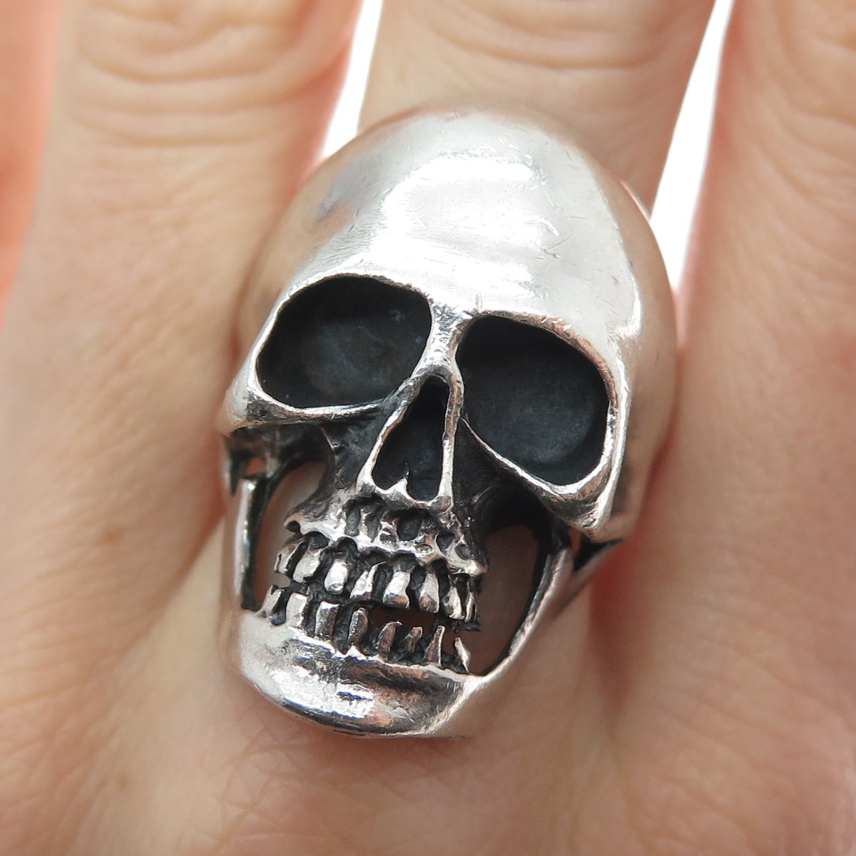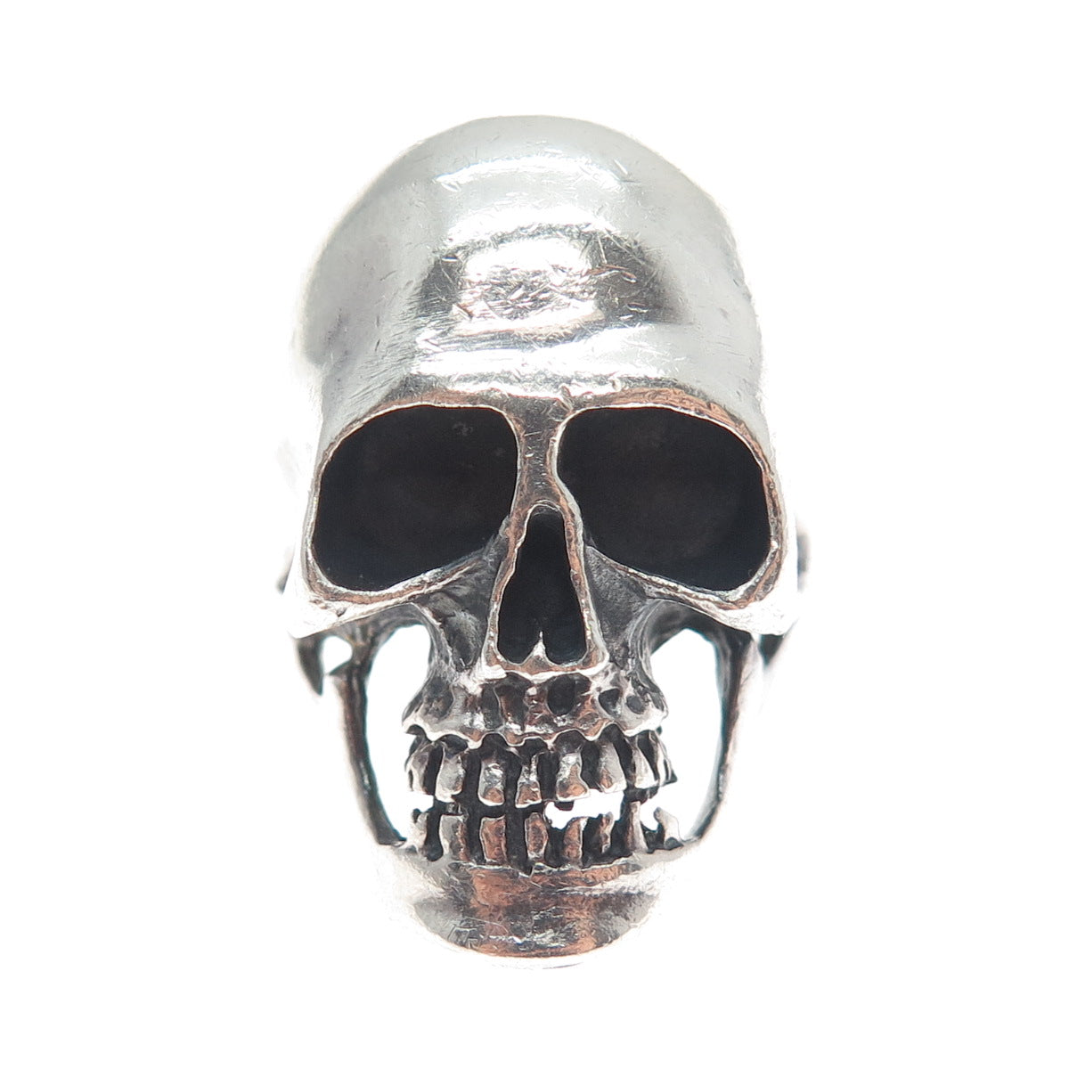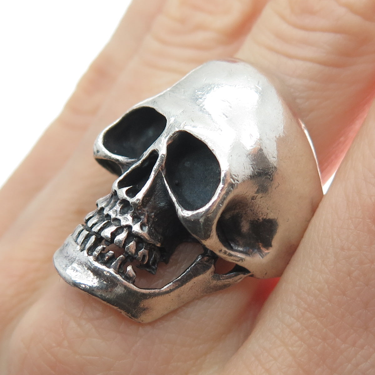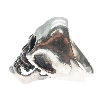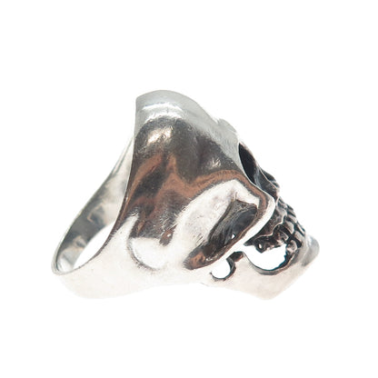925 Sterling Silver Vintage Skull Biker Statement Oxidized Ring Size 11