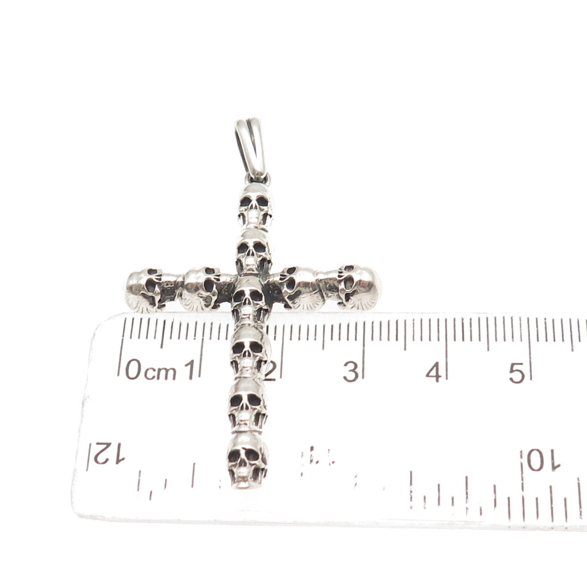 925 Sterling Silver Vintage Skull Cross Oxidized Gothic Pendant