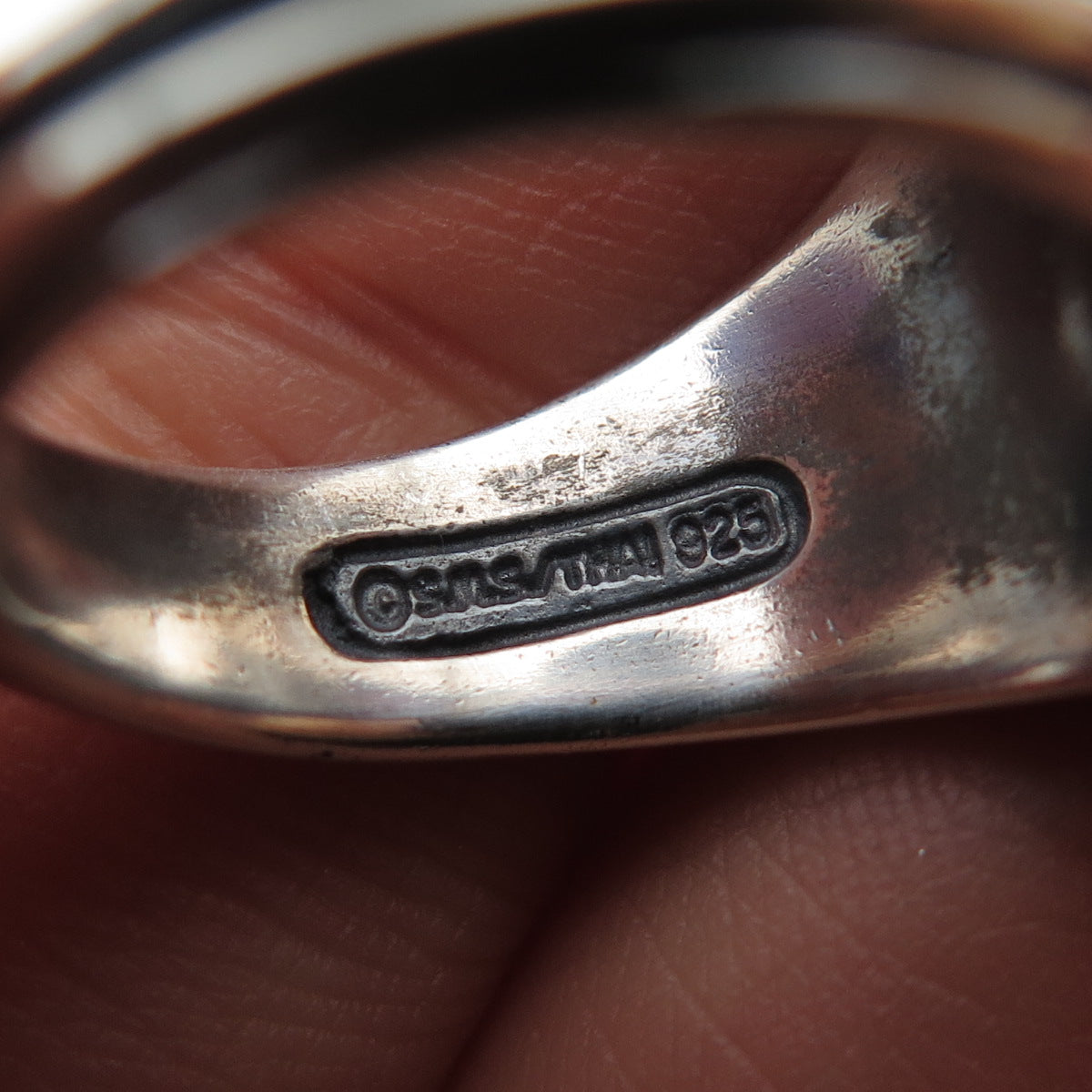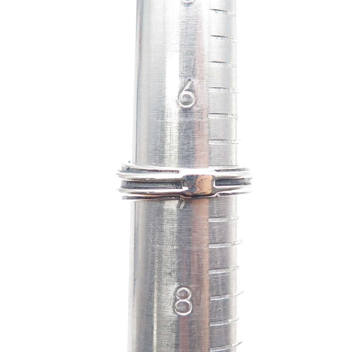925 Sterling Silver Vintage SMS Amethyst Modernist Scroll Oxidized Ring Size 7