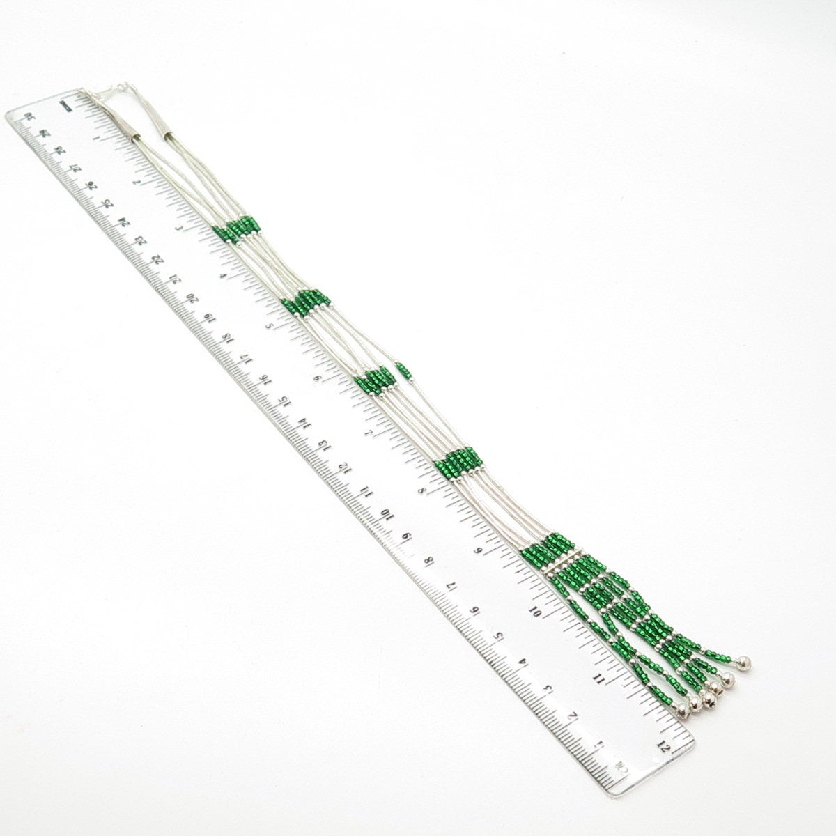 925 Sterling Silver Vintage Sunrise Green Beads Liquid Tribal Chain Necklace 20"