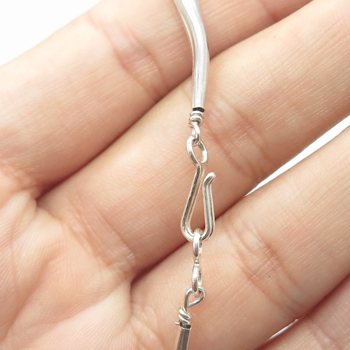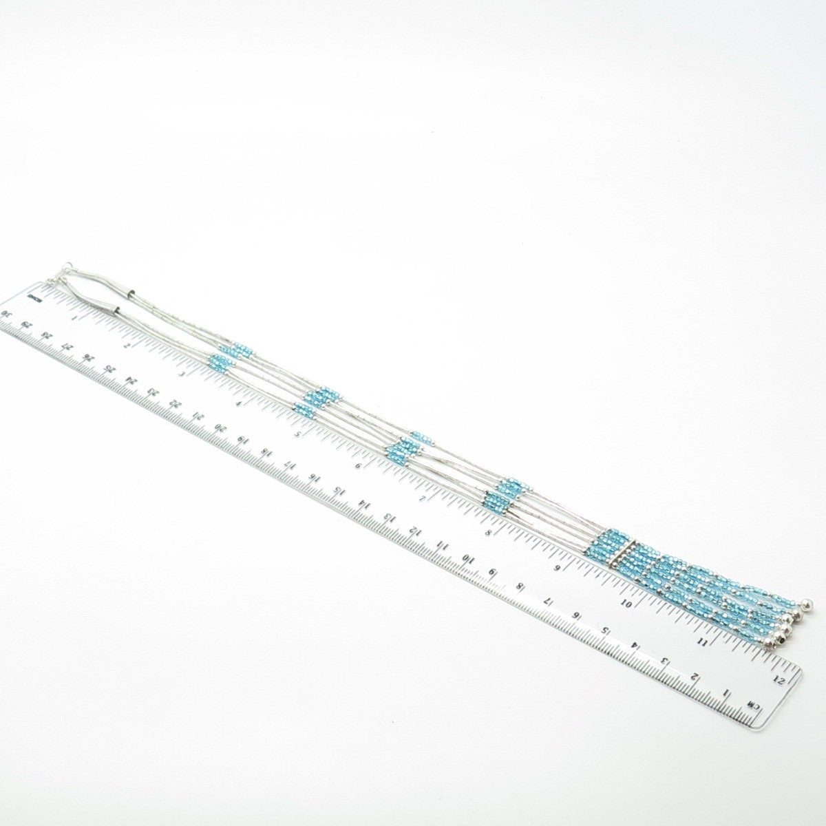 925 Sterling Silver Vintage Sunrise Southwestern Blue Beads Liquid Necklace 20"