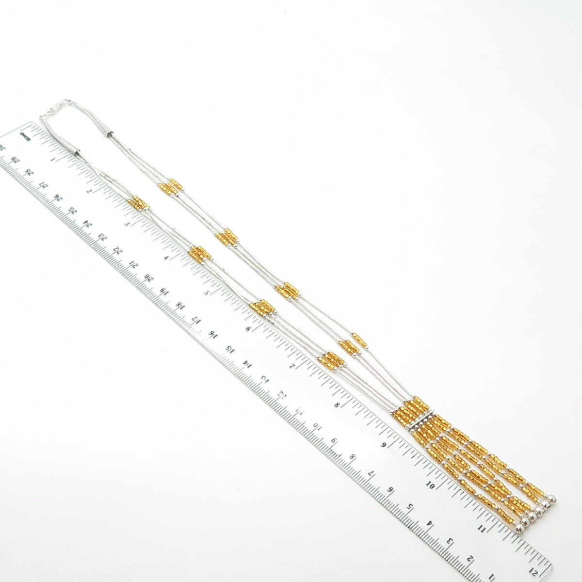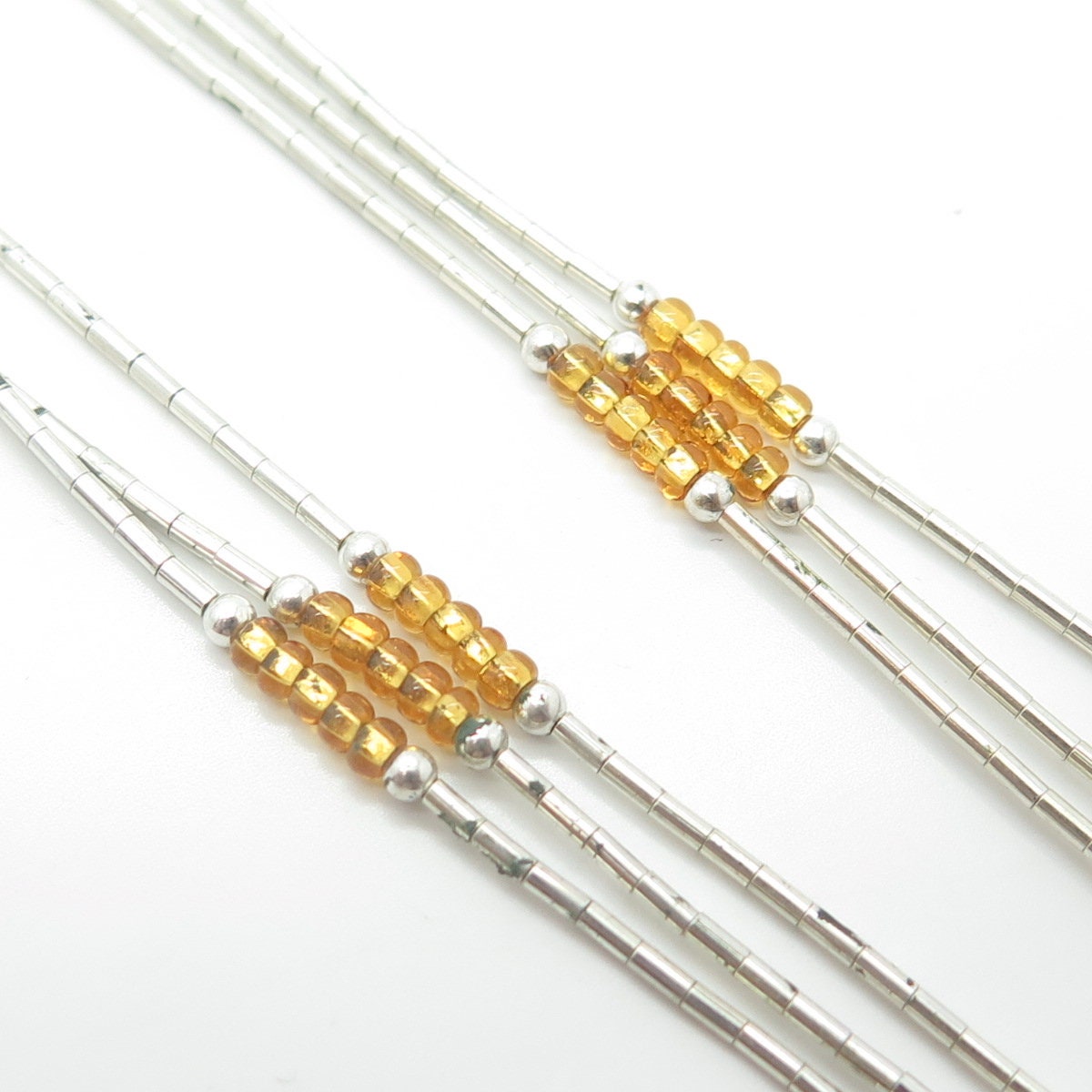 925 Sterling Silver Vintage Sunrise Southwestern Yellow Bead Liquid Necklace 20"